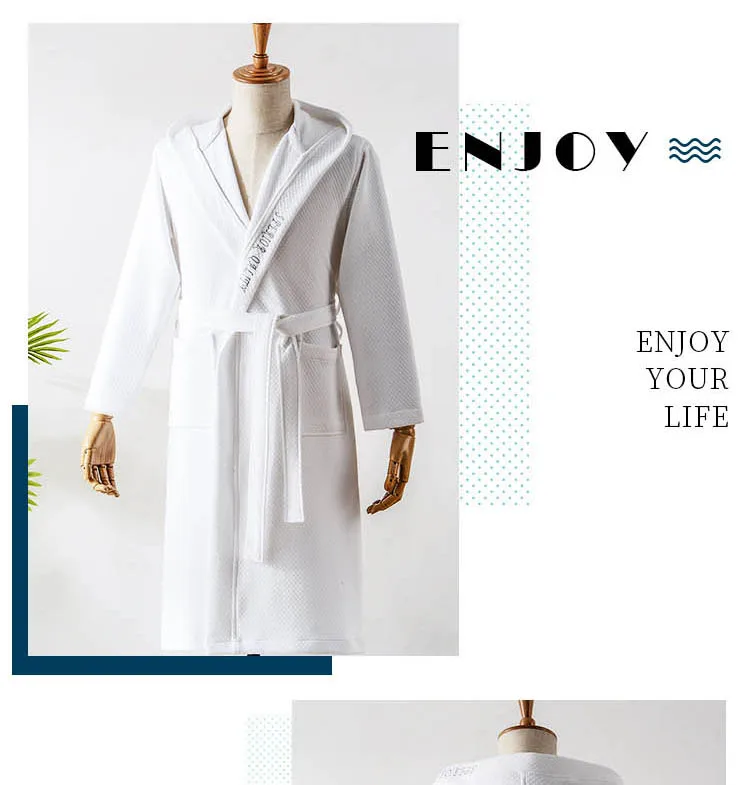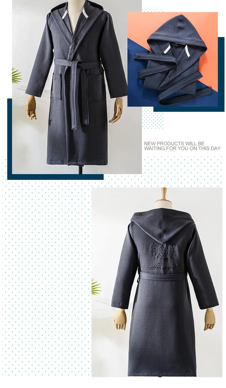 Hooded Bathrobe Men Cotton Lovers Luxury Long Kimono Men’s Robe Homewear Sleepwear Lounges Pajamas Wedding Brides Bridesmaid