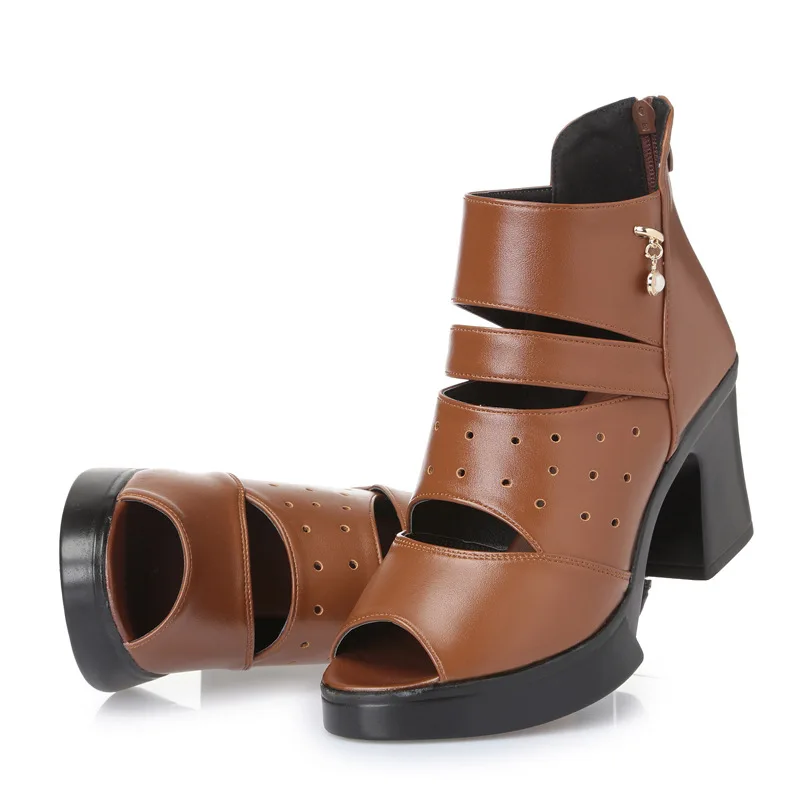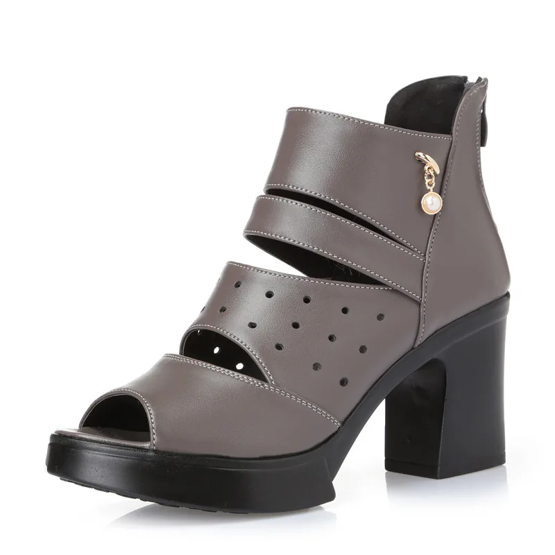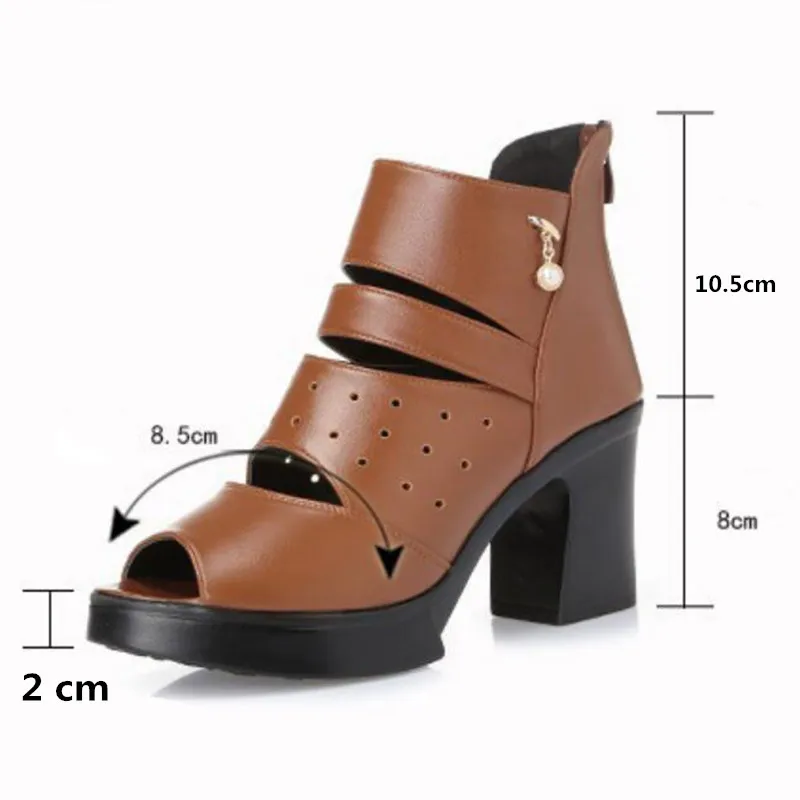 Hot 2020 Newest Summer Genuine Leather Sandals Women Shoes High Heel Sandals Fashion Elegant Non-slip Wear Summer Women Sandals