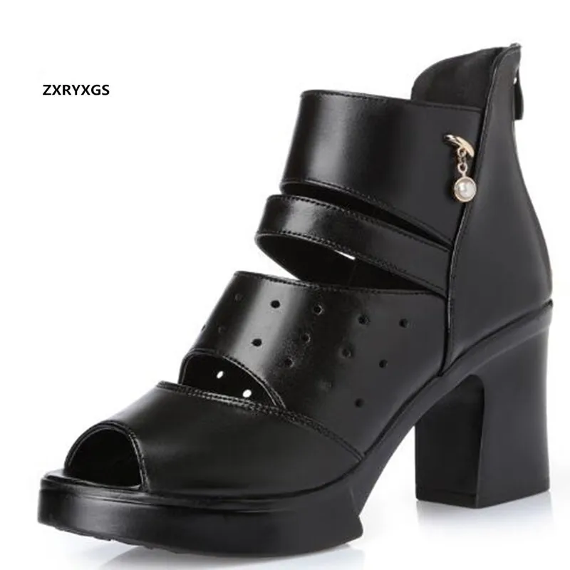 Hot 2020 Newest Summer Genuine Leather Sandals Women Shoes High Heel Sandals Fashion Elegant Non-slip Wear Summer Women Sandals