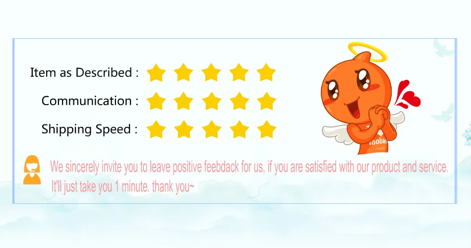 We appreciate your business, if you are satisfied with our products, please leave us 5 star feedback. if there is any problem of the order,we will always make every efforts to let you happy with the order.Thanks!!