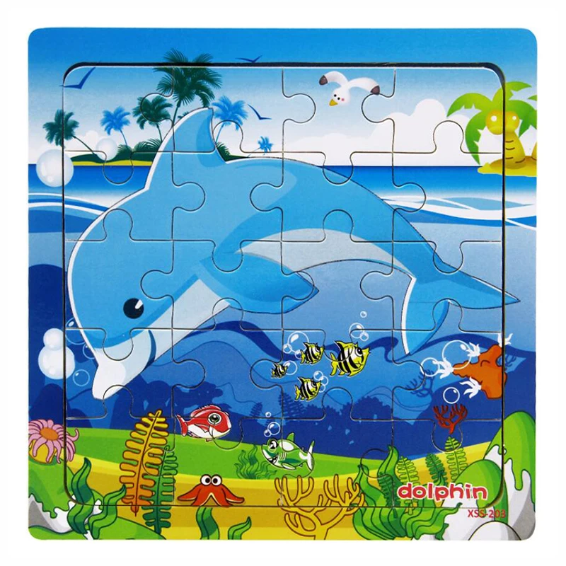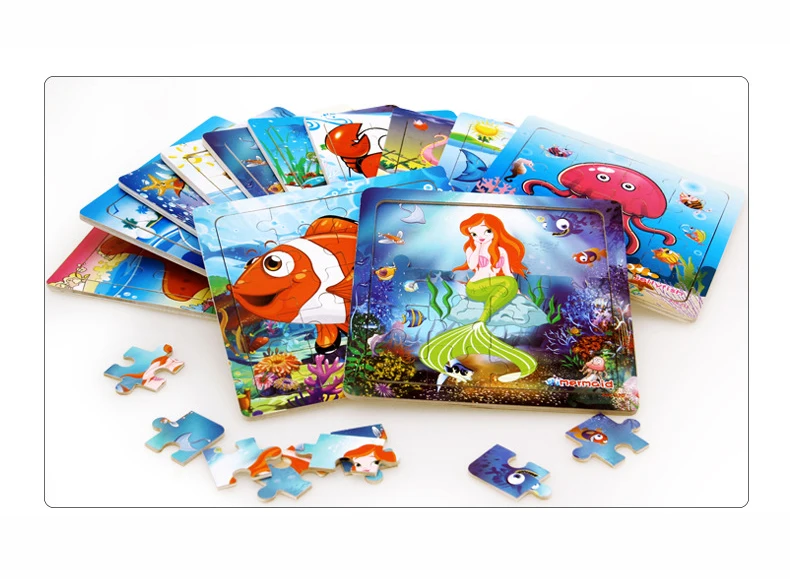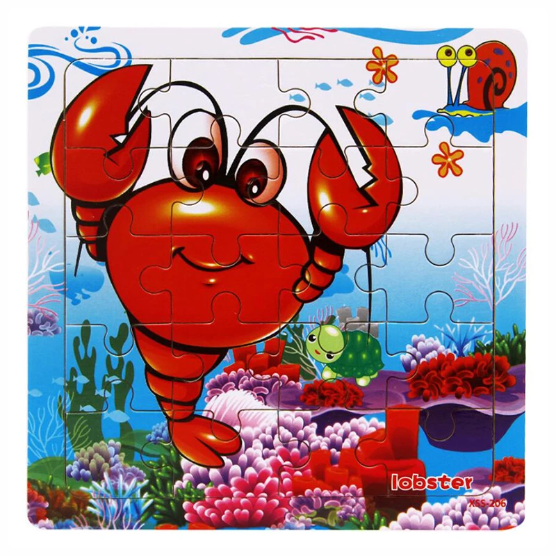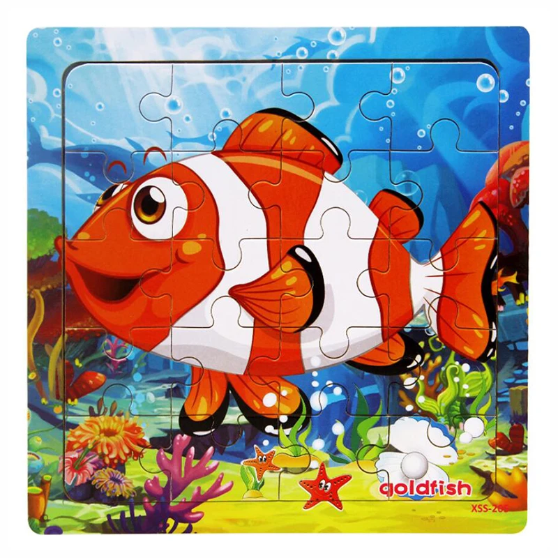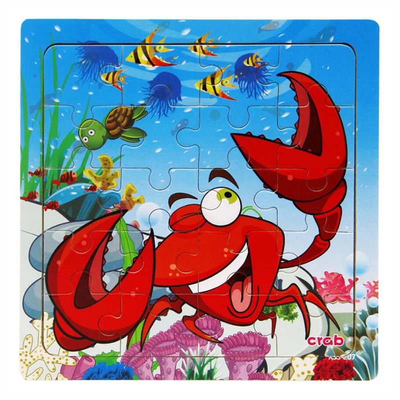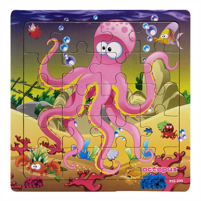 Name: Hot Sell Wooden Marine Animal Puzzle Baby Wood Toy Cartoon Small Jigsaw Puzzles kids Learning Educational Toys for Children Gift