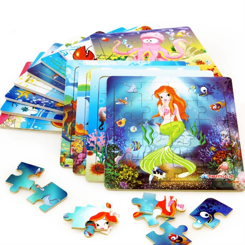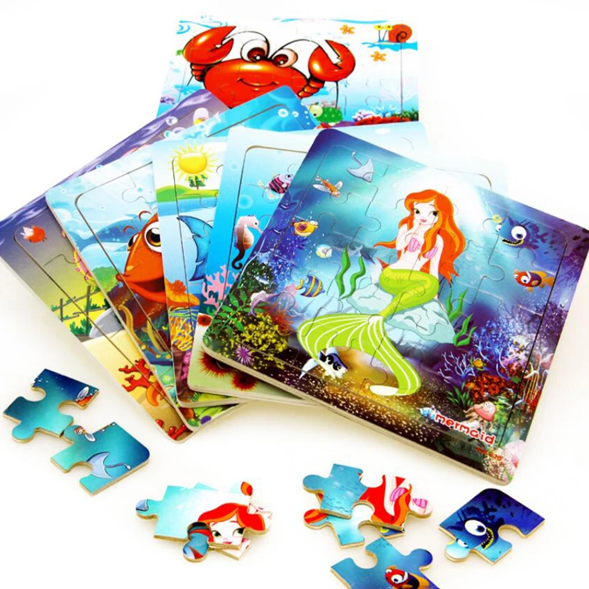 Name: Hot Sell Wooden Marine Animal Puzzle Baby Wood Toy Cartoon Small Jigsaw Puzzles kids Learning Educational Toys for Children Gift