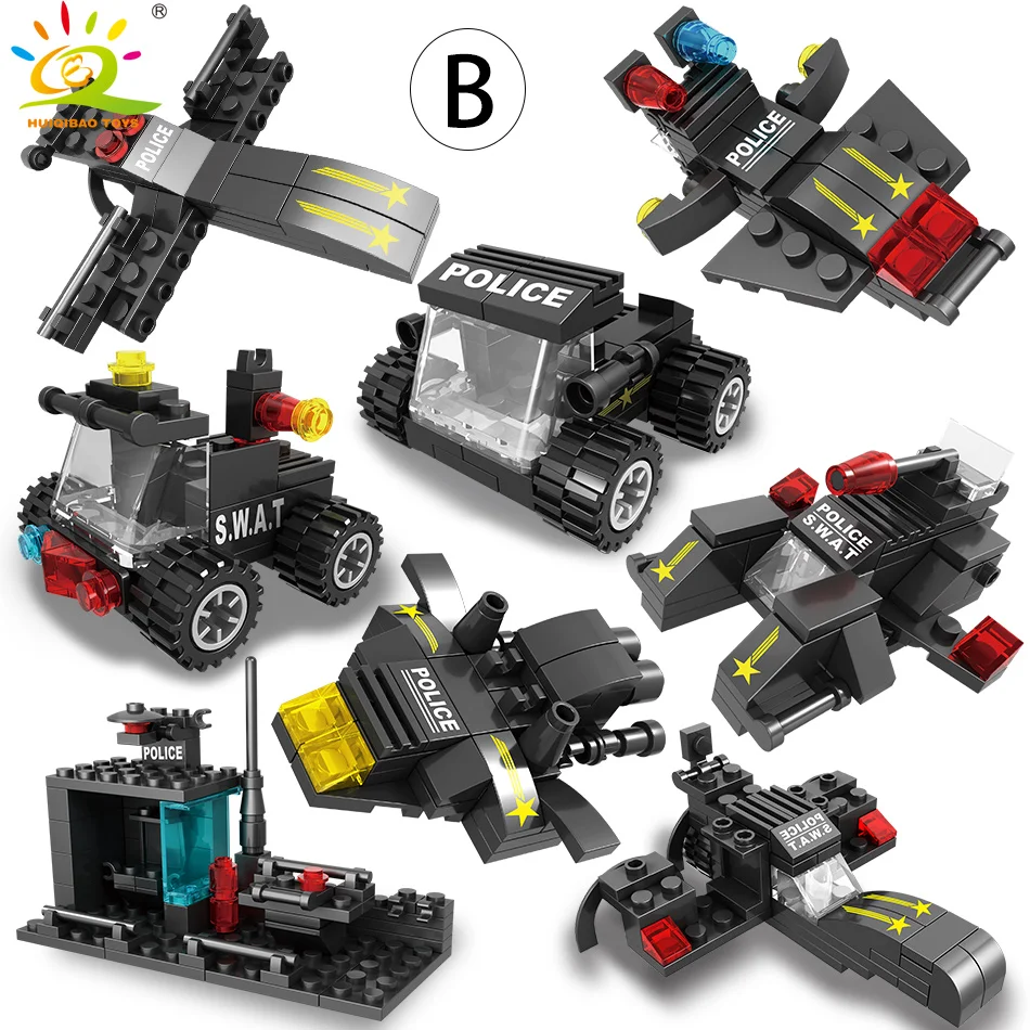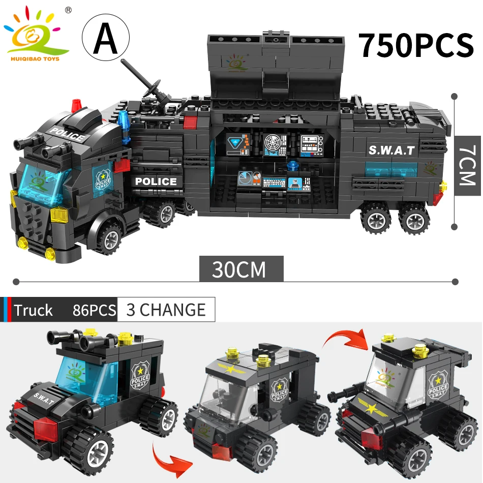HUIQIBAO SWAT Police Station truck model Building Blocks City machine Helicopter Car Figures Bricks Educational Toy For Children