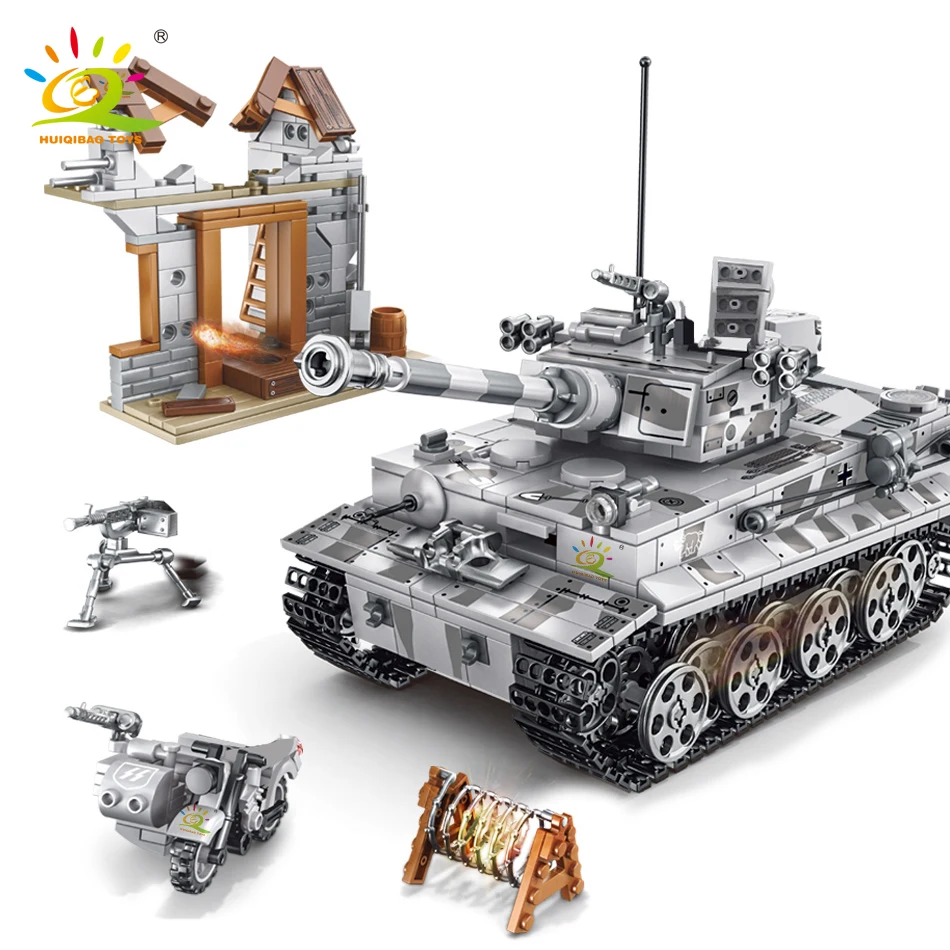 HUIQIBAO TOYS 1154pcs Military German tiger Tank Building Blocks WW2 Army Soldier Figure Set For Children Boy Bricks