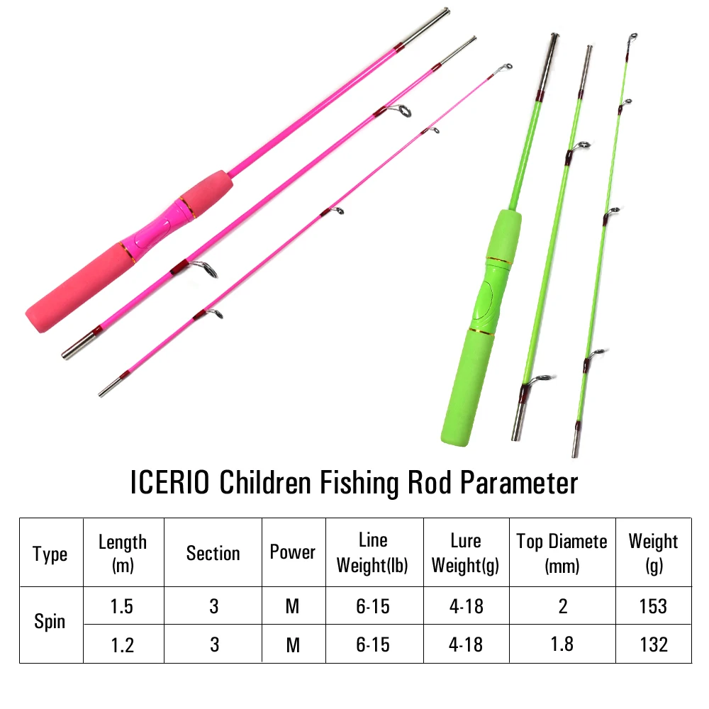 ICERIO 1.5m 1.2m Ultra Light Spinning Children Fishing Lure Rod M Power Glass Fiber Carp Fishing Rods