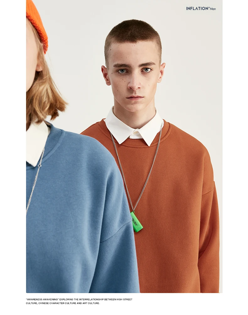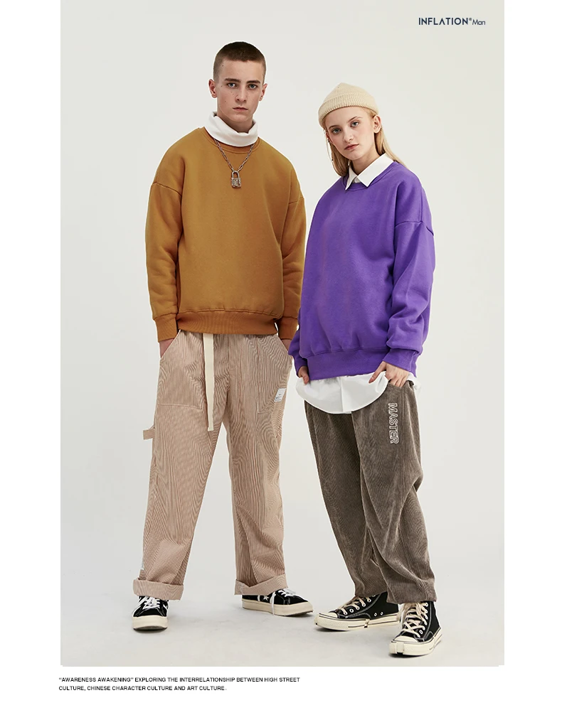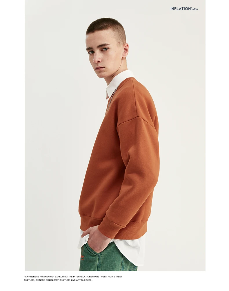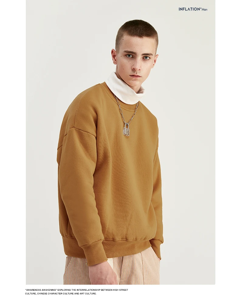 INFLATION Winter Mens Hip Hop Multi-colour Hoodies Velvet Fabrics Fleece Sweatshirts 8 Solid Color Winter Men Sweatshirts 166W17