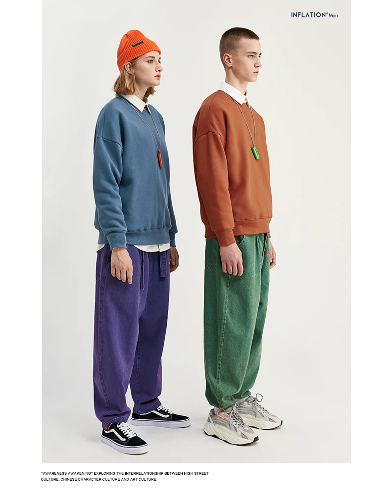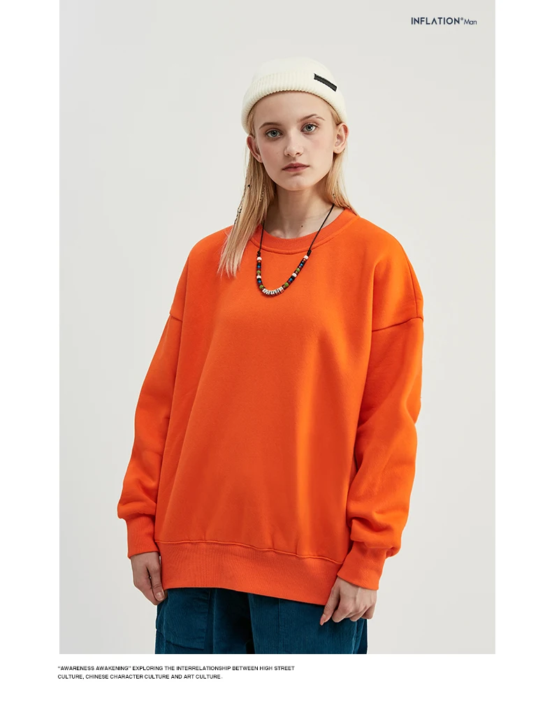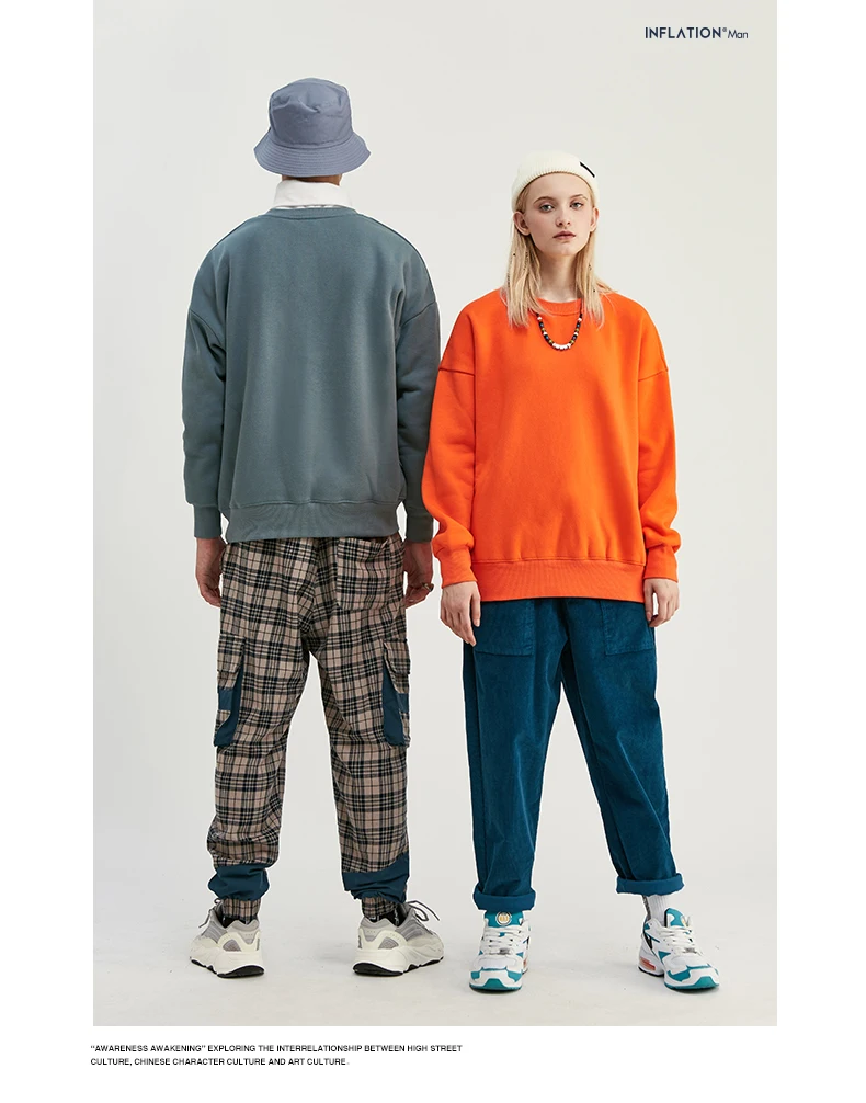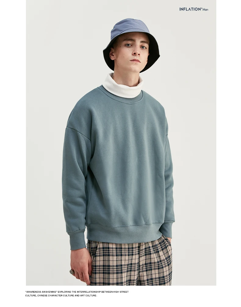 INFLATION Winter Mens Hip Hop Multi-colour Hoodies Velvet Fabrics Fleece Sweatshirts 8 Solid Color Winter Men Sweatshirts 166W17