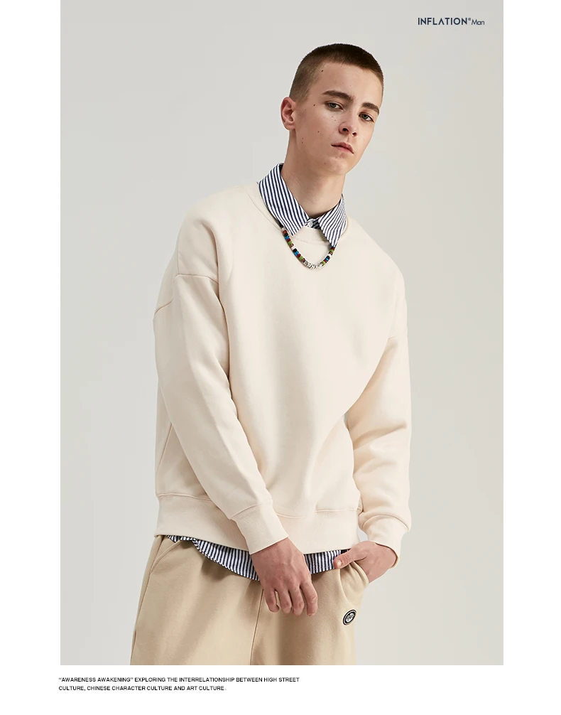 INFLATION Winter Mens Hip Hop Multi-colour Hoodies Velvet Fabrics Fleece Sweatshirts 8 Solid Color Winter Men Sweatshirts 166W17