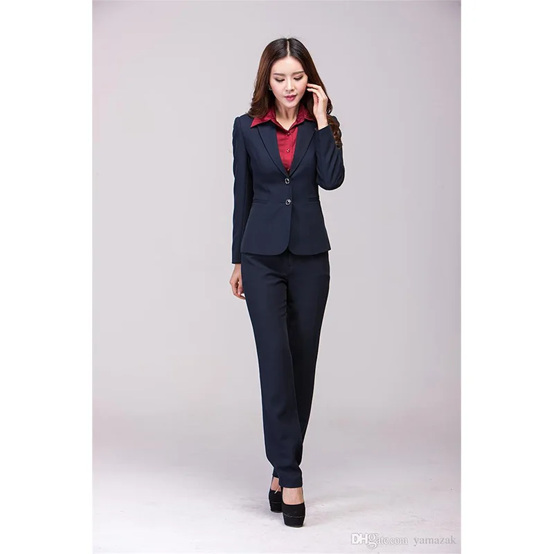 Jacket+Pants New Navy Womens Business Suits Slim Female Office Uniform Formal Work Wear Single Breasted 2 Piece Sets Custom Made