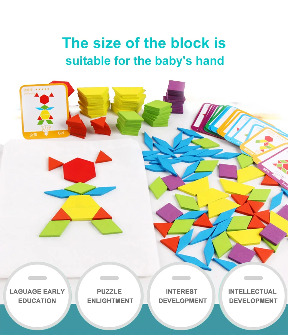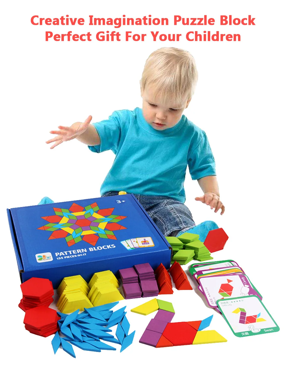Jigsaw Puzzle For Children Kids Tangram Wooden Jigsaw Puzzle Wood Montessori Educational Toys For Children Learning Toys 155 pcs