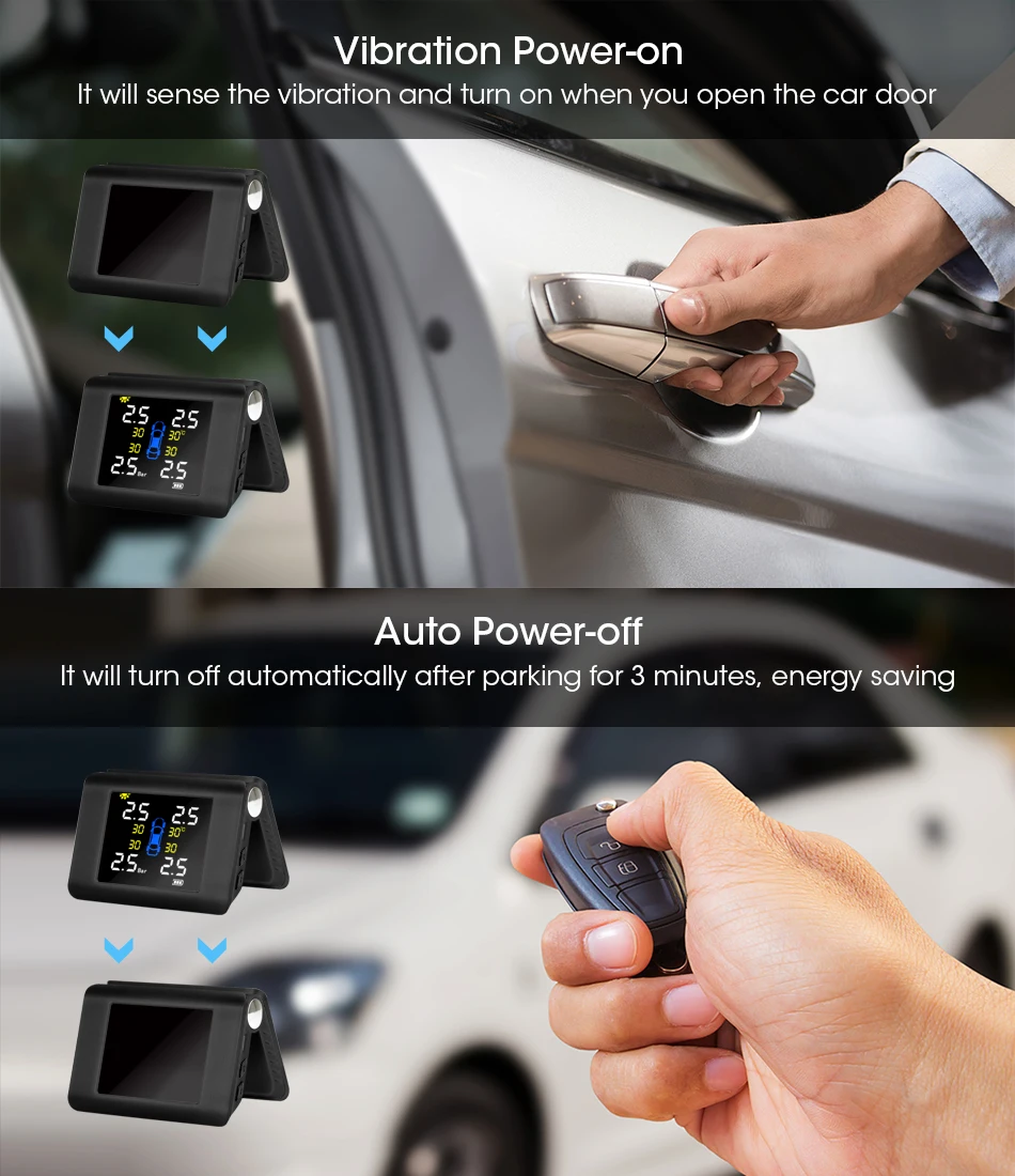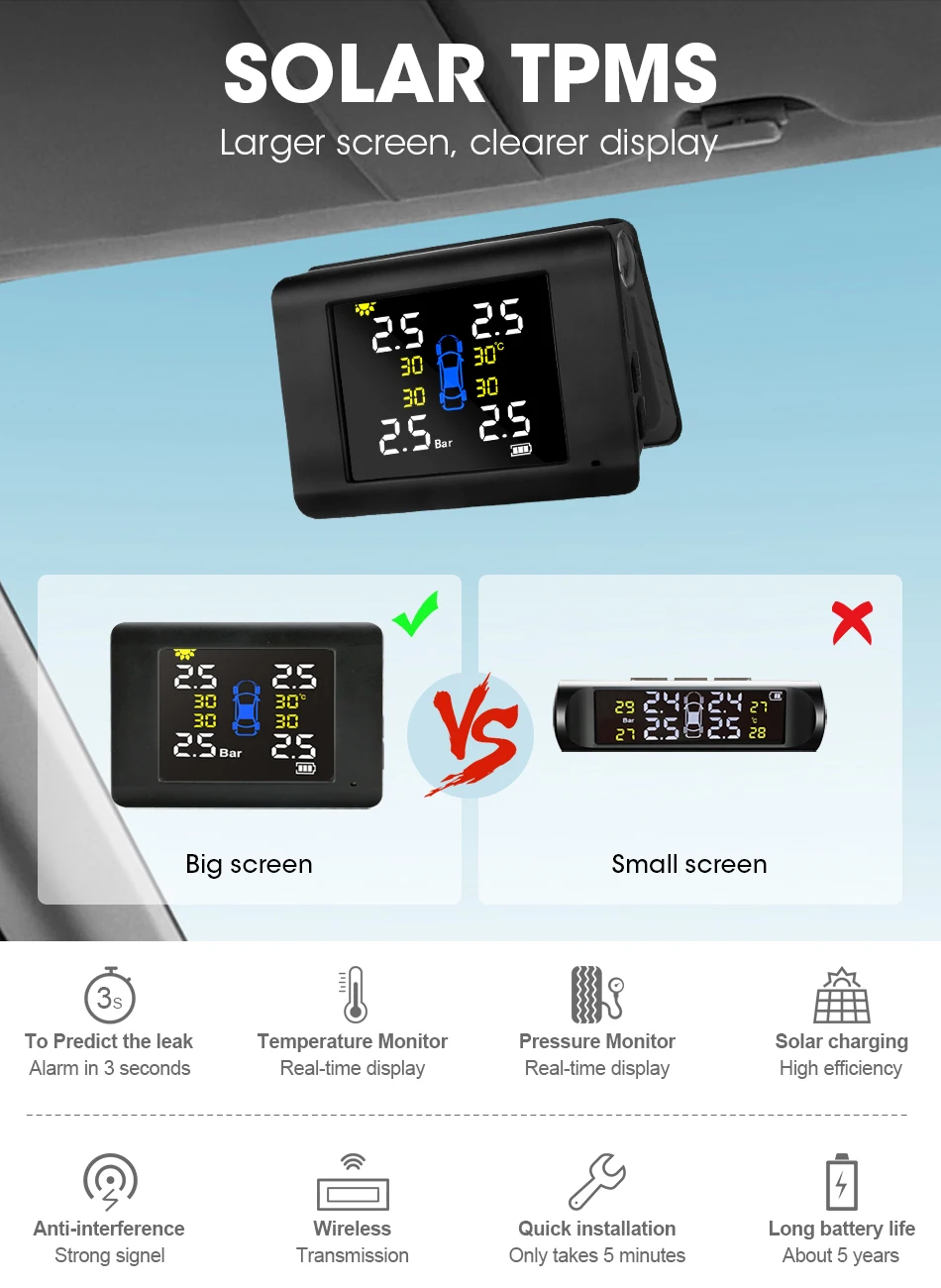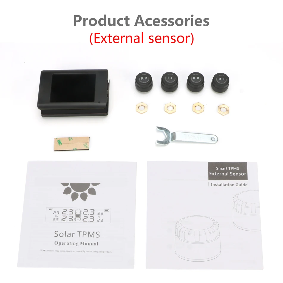 JMCQ TPMS Solar Power Tyre Pressure Monitoring System with 4 Sensors LCD Real-time Display Car Tire Pressure Auto Alarm System