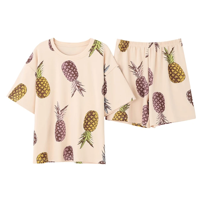 JRMISSLI pineapple Printing Style Set Pijamas Plus Size Womens Pajamas Short Sleeve Short Pants Sleepwear Homesuit Home clothes