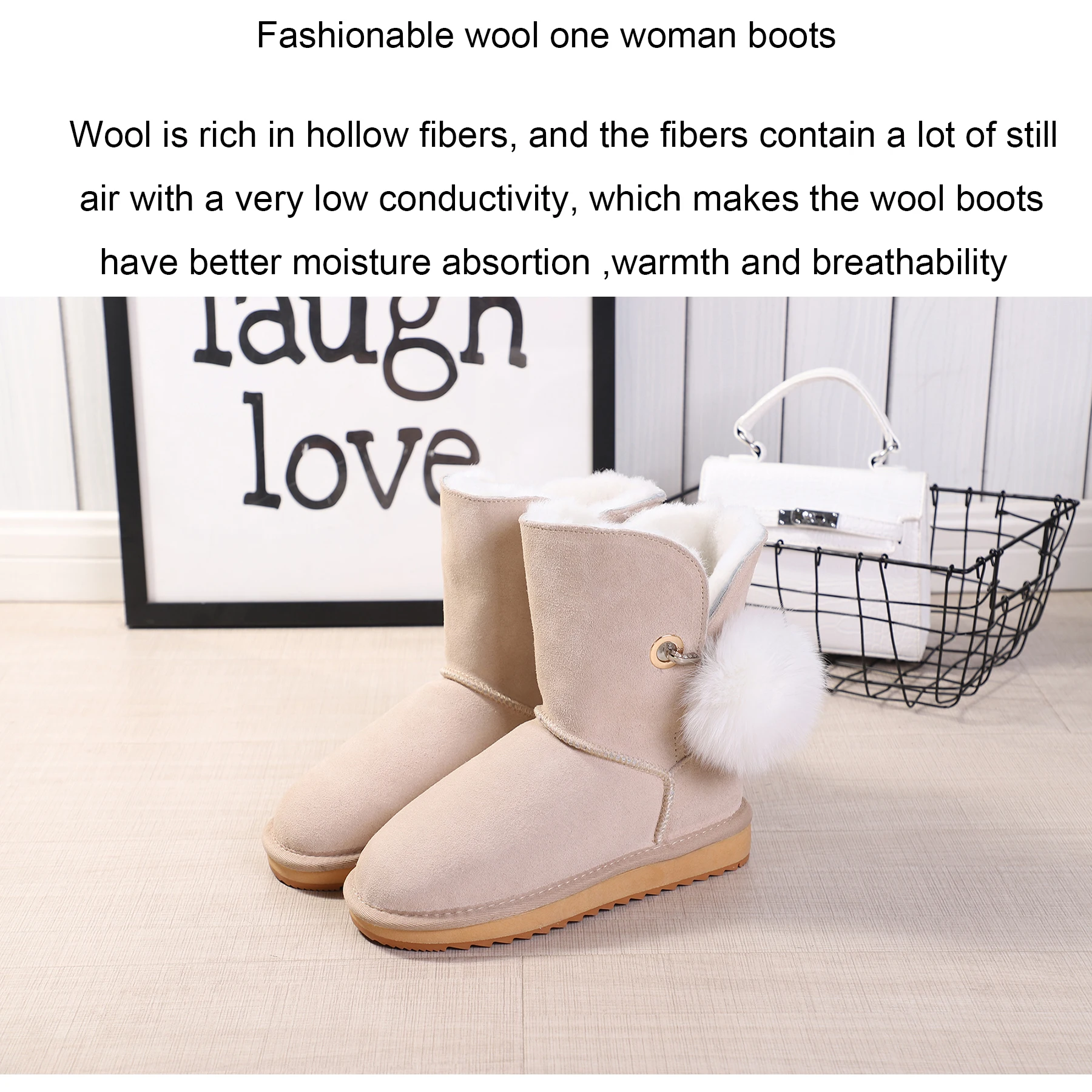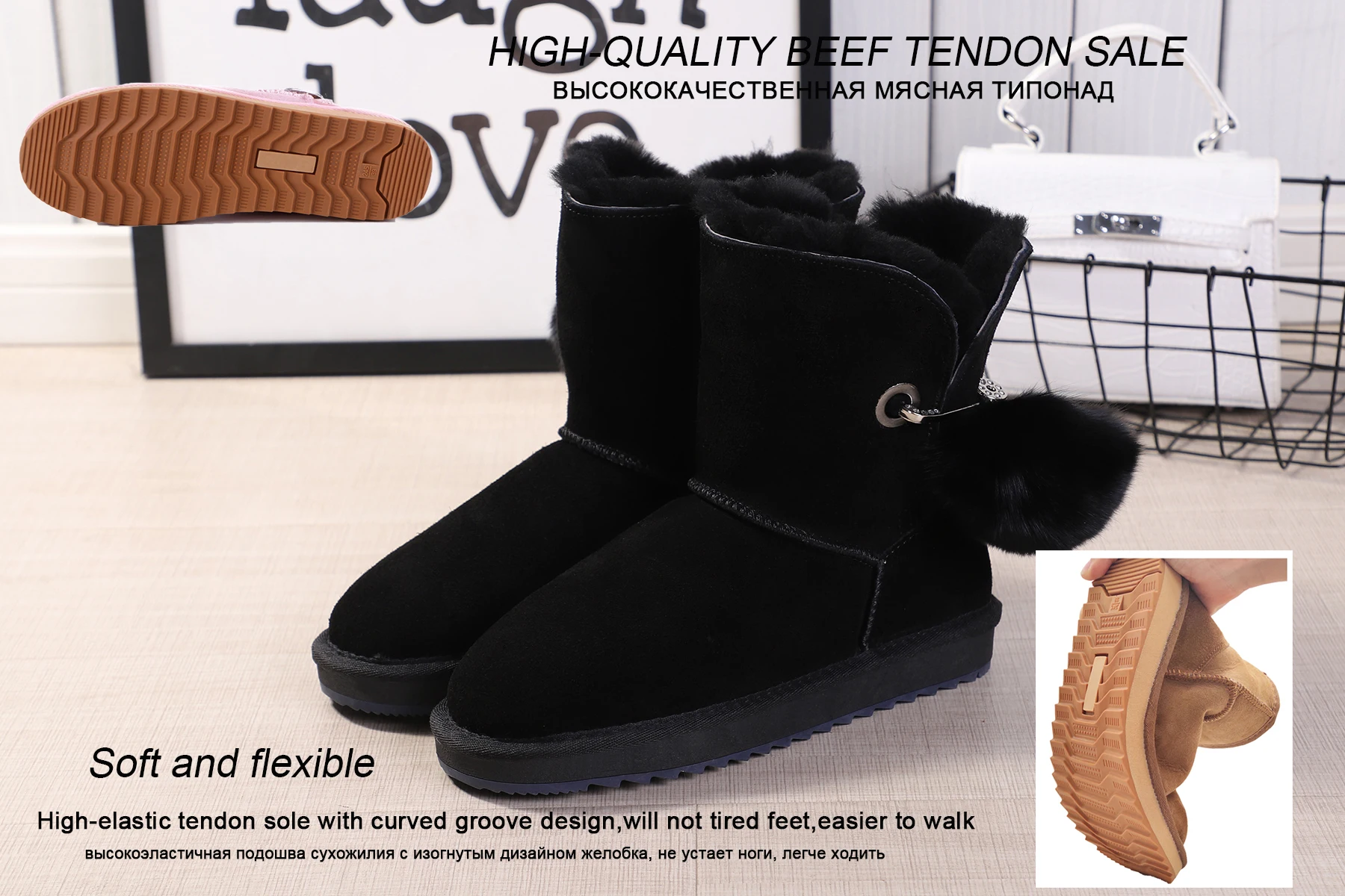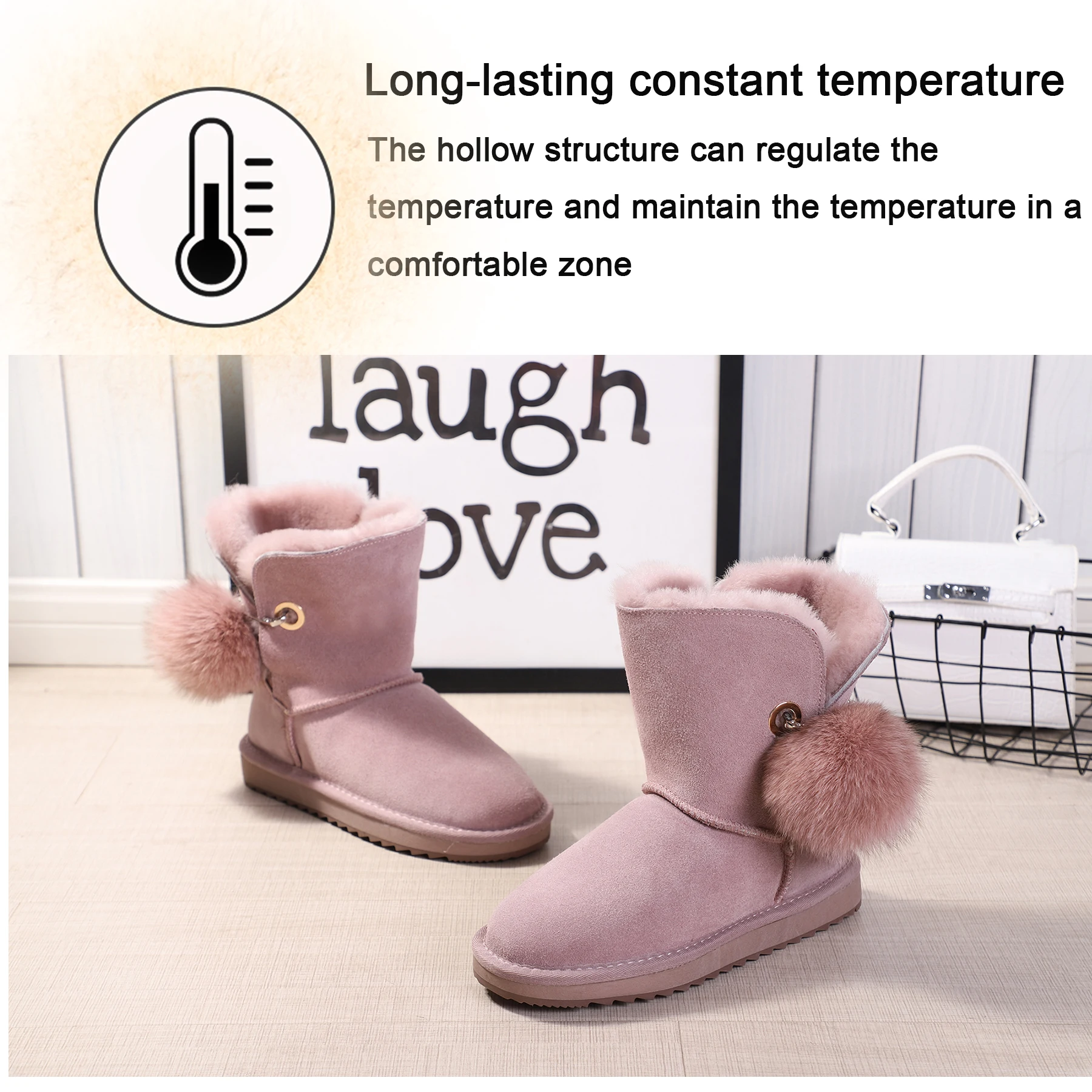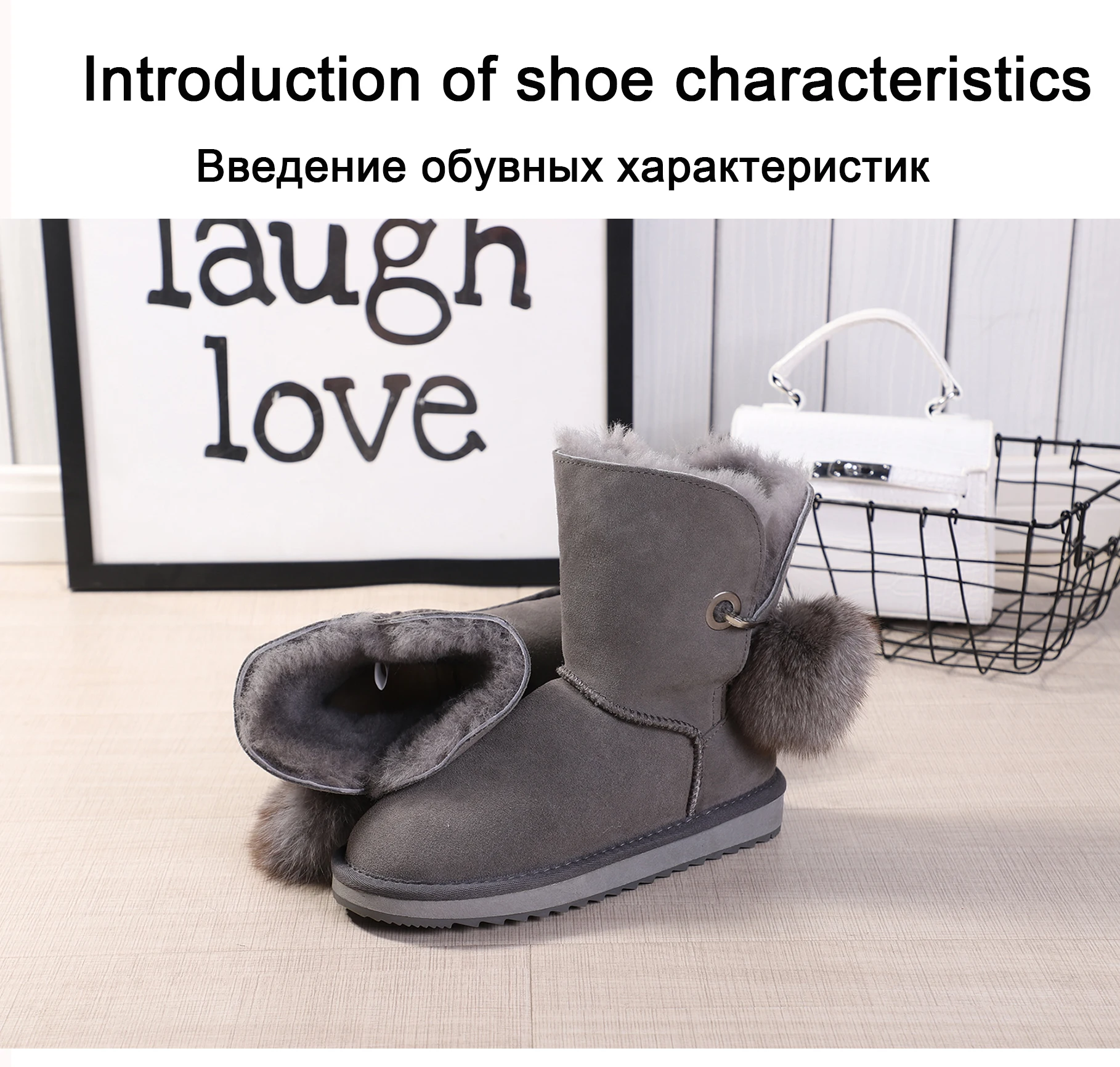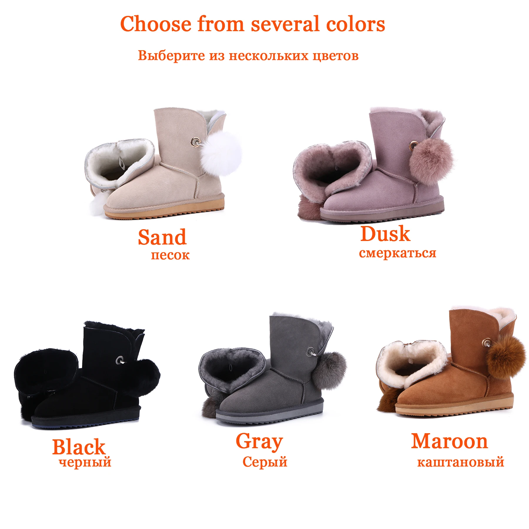 JXANG 2020 High Quality Crystal Pom-pom Brooch Women Winter Shoes Fox Fur Ball Sheepskin Suede Leather Lined Women Snow Boots