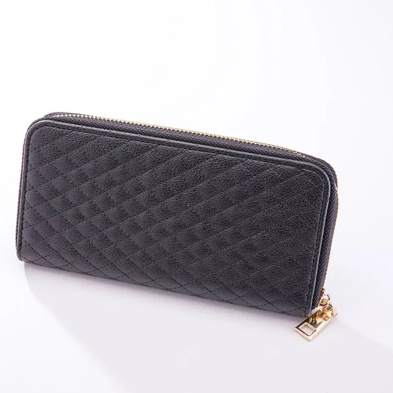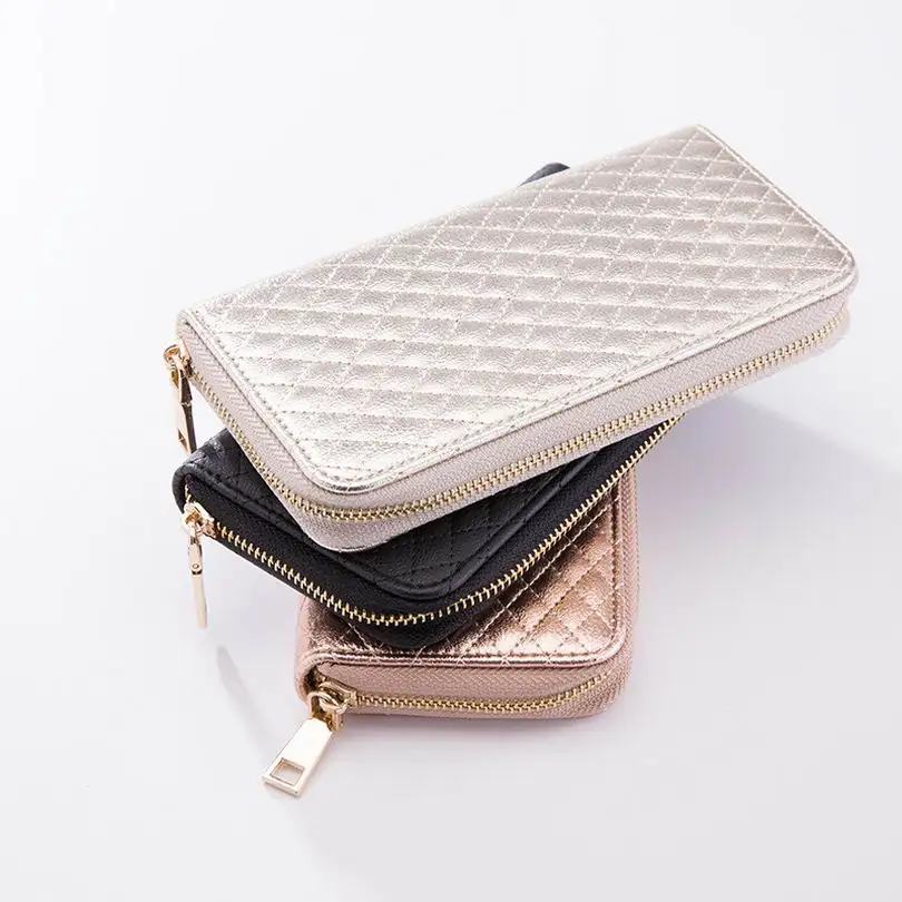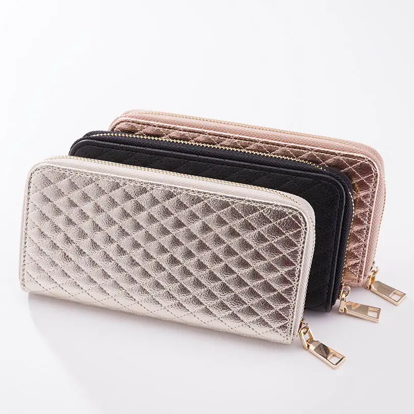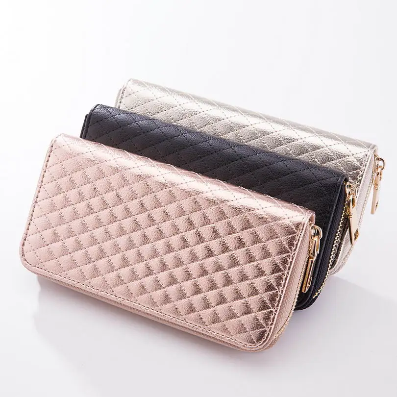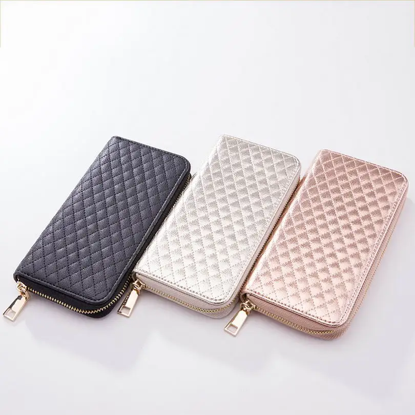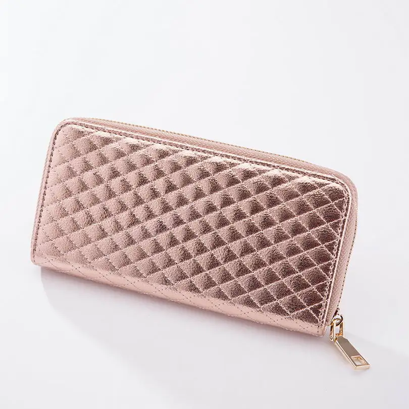 KANDRA Women Single Zipper Rose Silver Rhombus Plaid Wallet 2019 Long Wallet Money Coin Pocket Card Holder Female Wallets Purse