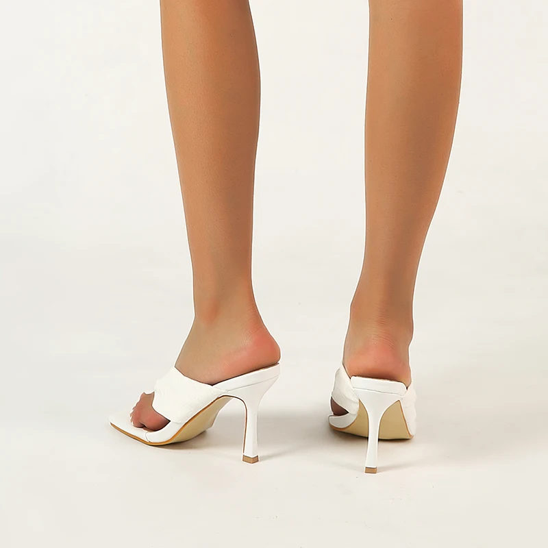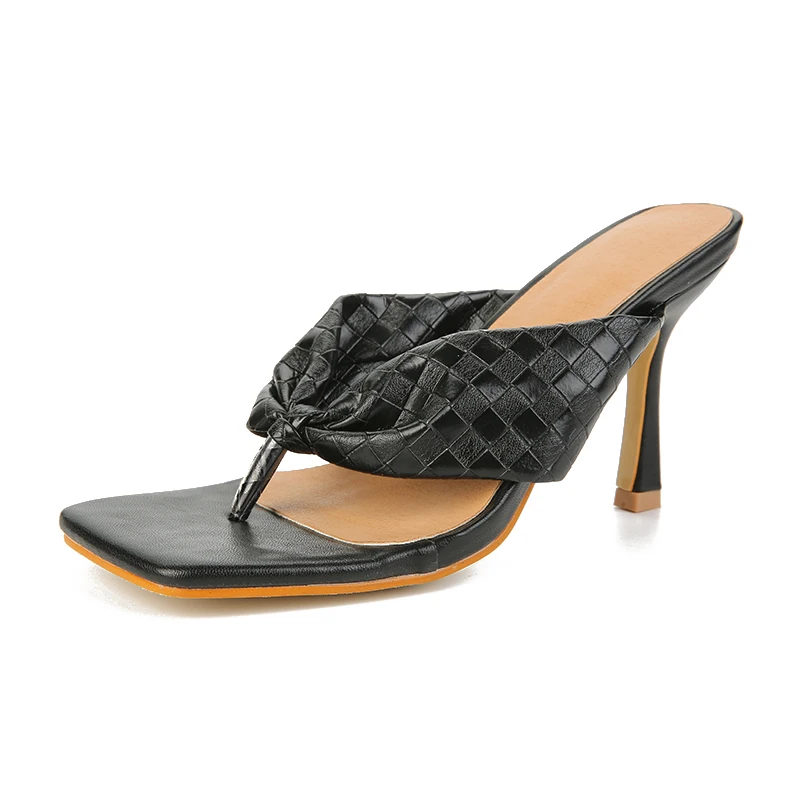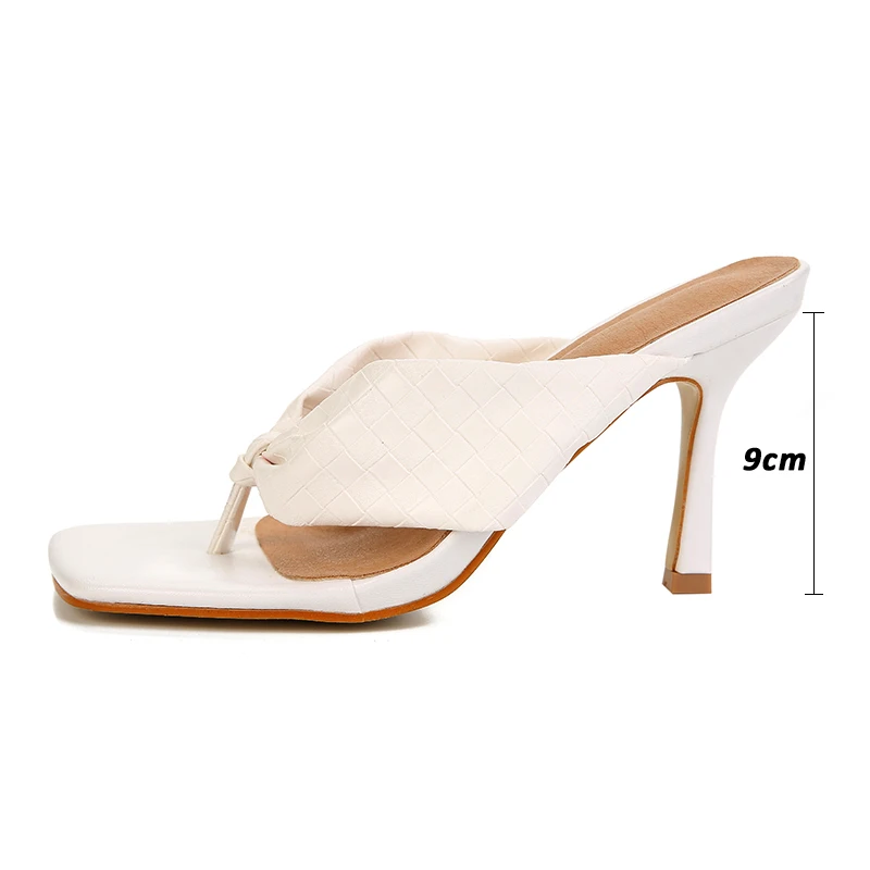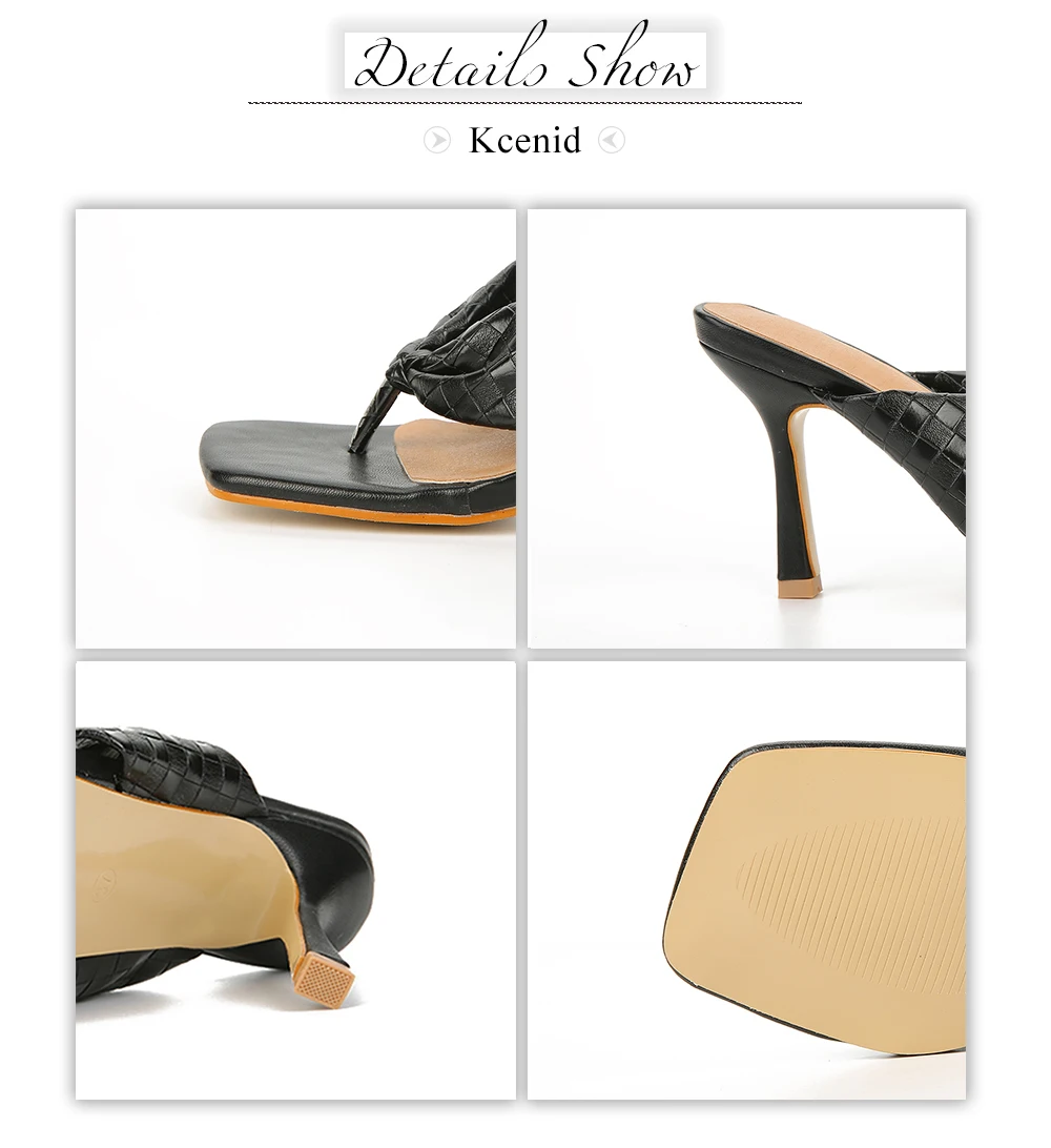 Kcenid New women summer slippers flip flops fashion braided square toe ladies heel mules sexy high heels shoes women slippers