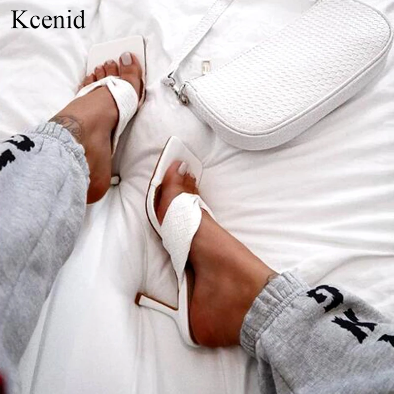 Kcenid New women summer slippers flip flops fashion braided square toe ladies heel mules sexy high heels shoes women slippers