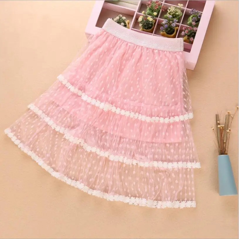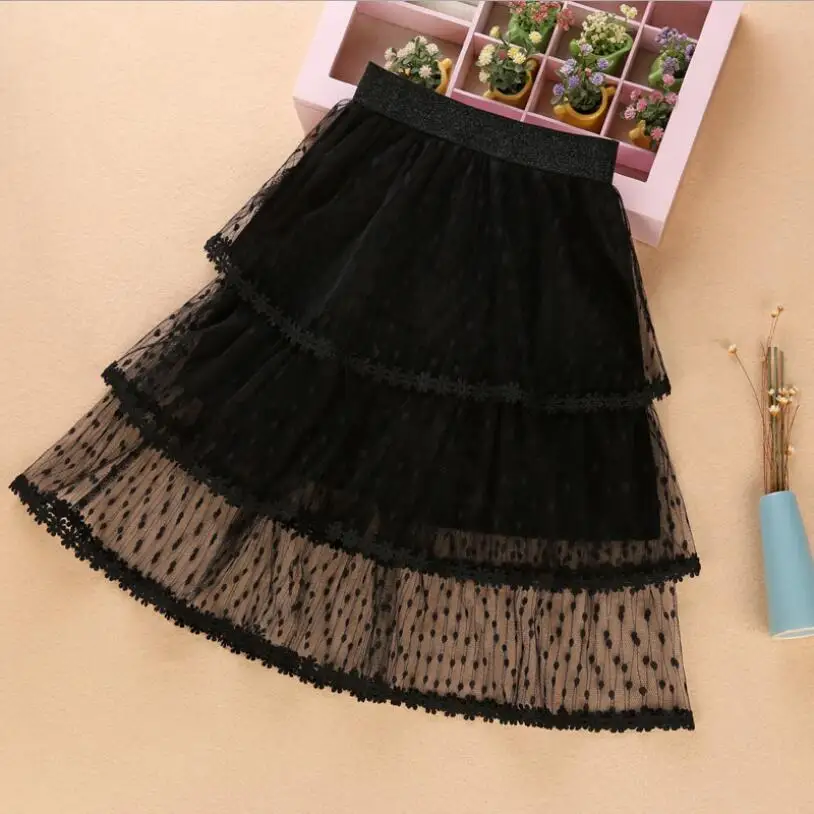 New Dot Long Tulle Skirt Elegant Pleated Tutu Skirts Girls Vintage Lolita Petticoat faldas mujer Saias Jupe Tutus 2019