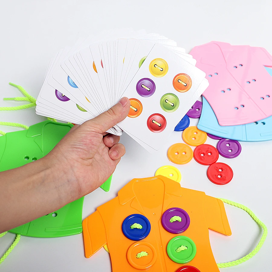 Kids Fine Motor Skills Toy Sewing on Buttons,Rope Clothes Buttons Lacing Board Toys,Sewing Play Kit Educational Toy for Children