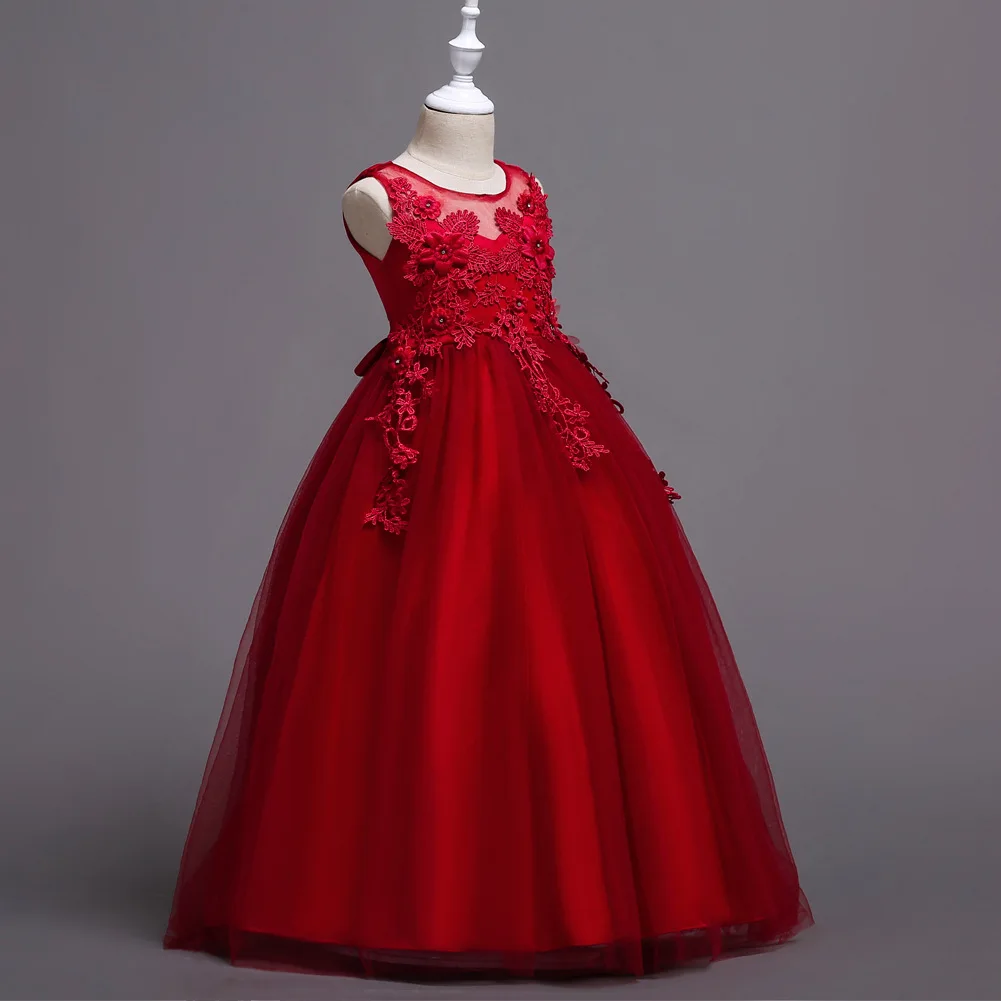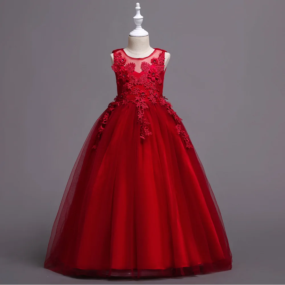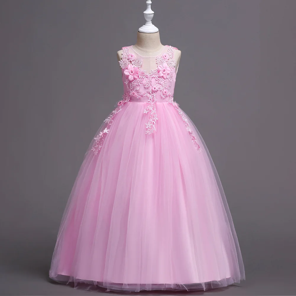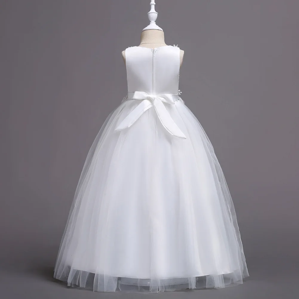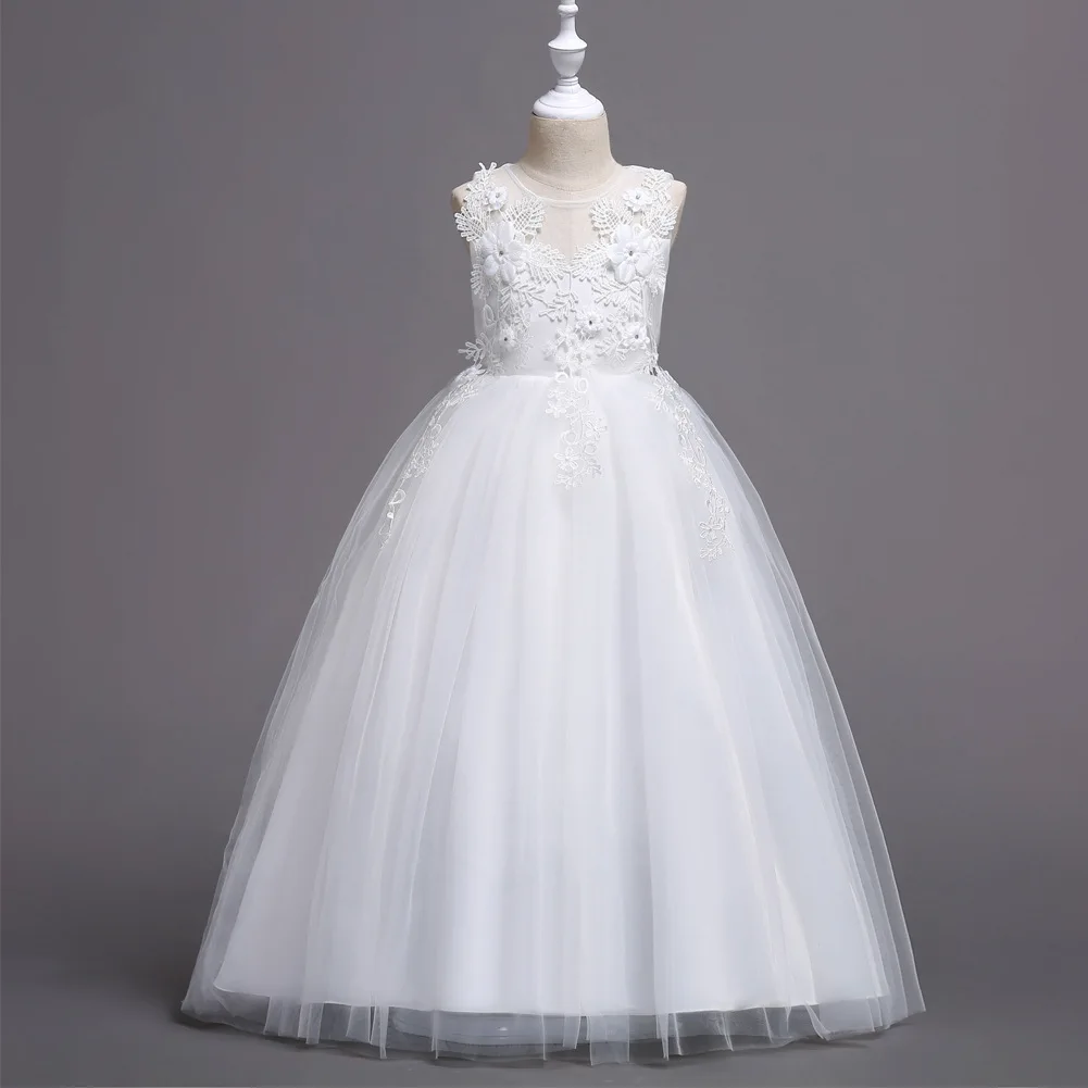 Kids Girls Dress Long White Lace Flower Party Ball Gown Prom Dresses Kids Girl Princess Wedding Children First Communion Dress