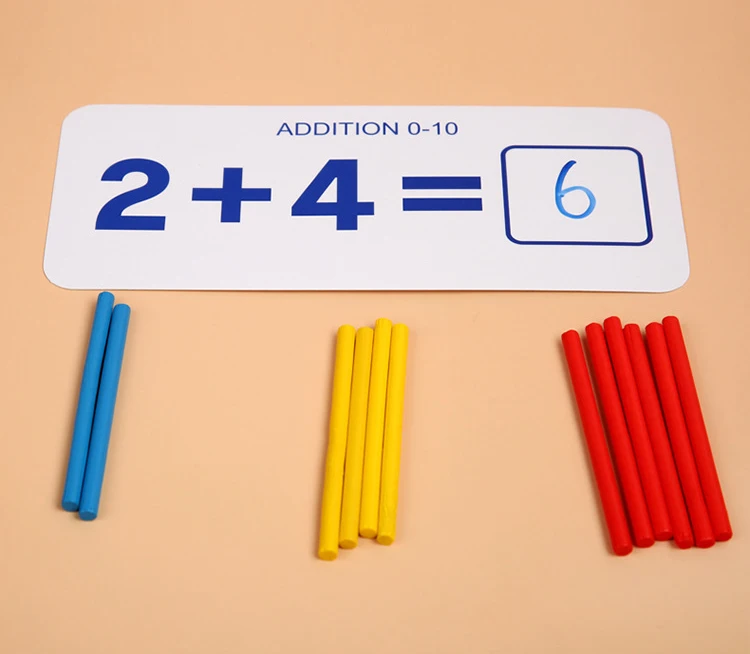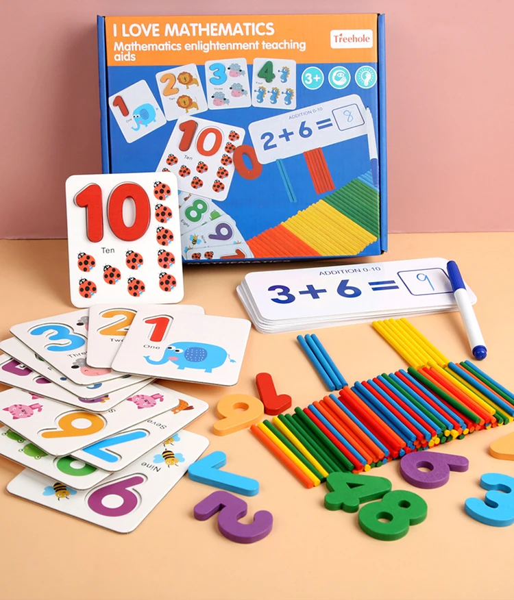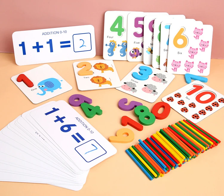 Kids Math Toys Wood Arithmetic Toy Digital Pairing Cards with Counting Sticks Kindergarten Preschool Toys for Children Girls Boys