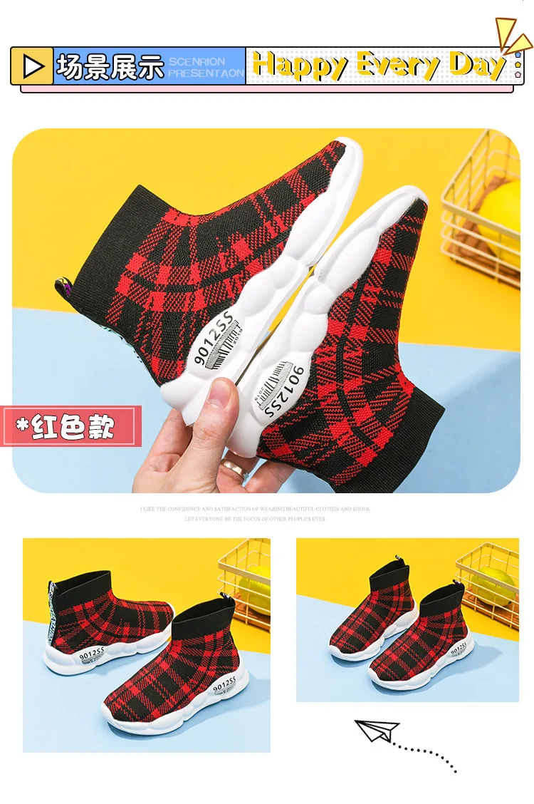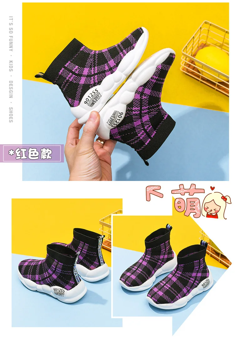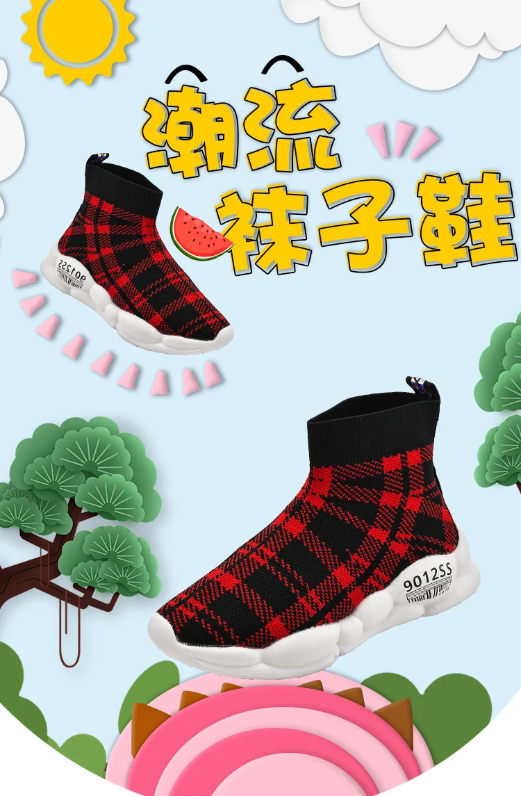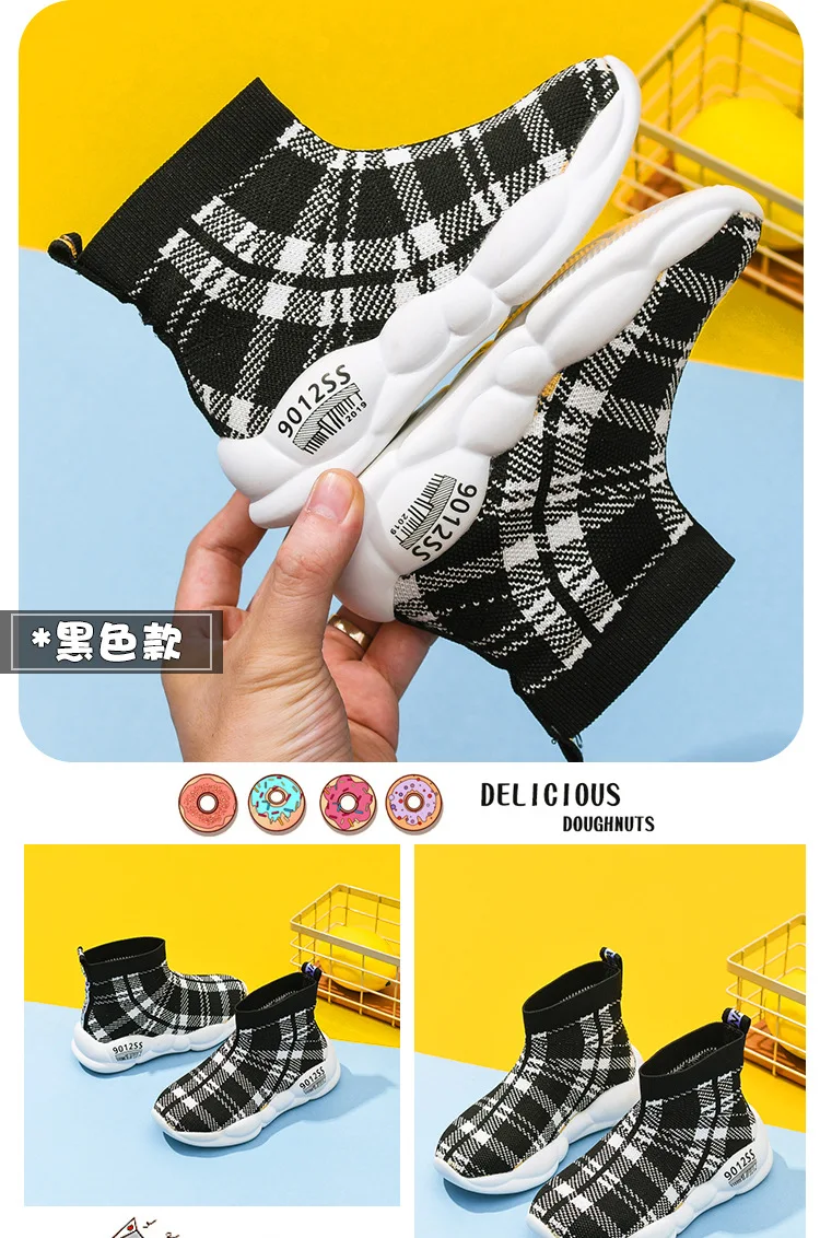Kids Shoes For Girls Casual Sneaker Running Boys Sports Shoes Outdoor Anti-slip Fashion Lattice Fly Knit Children Socks Sneakers