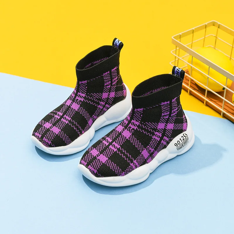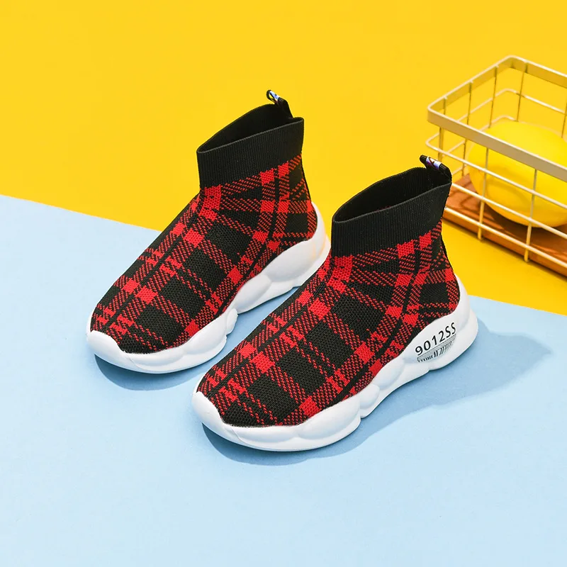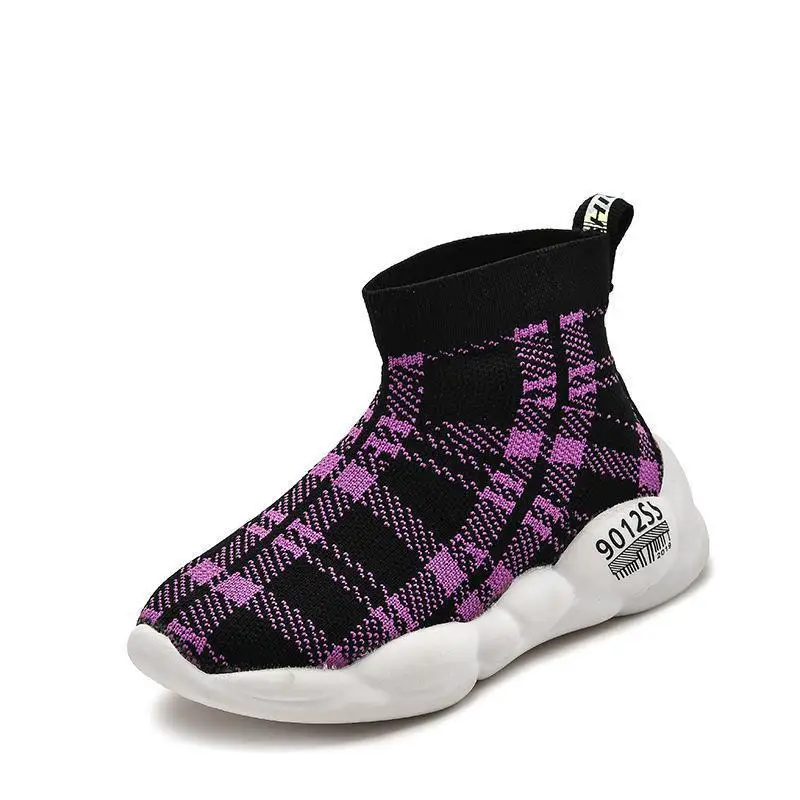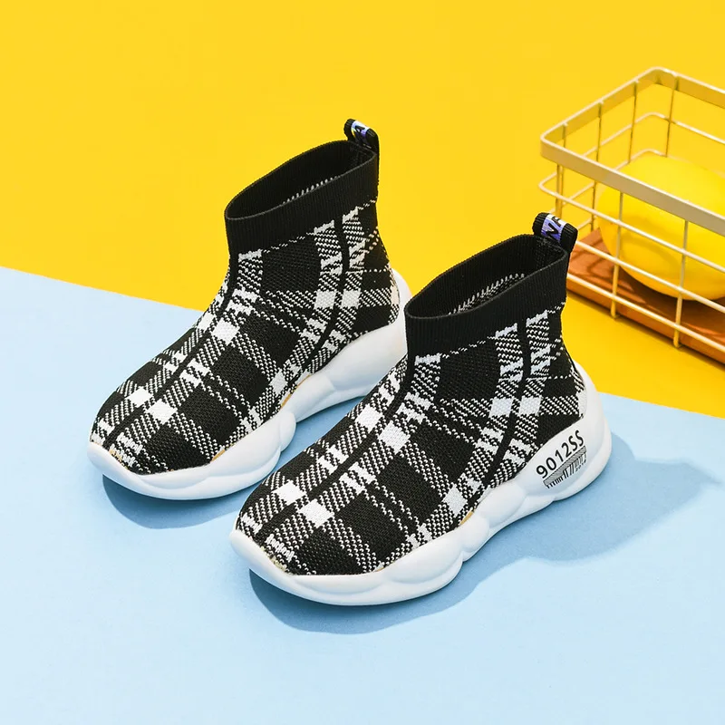 Kids Shoes For Girls Casual Sneaker Running Boys Sports Shoes Outdoor Anti-slip Fashion Lattice Fly Knit Children Socks Sneakers