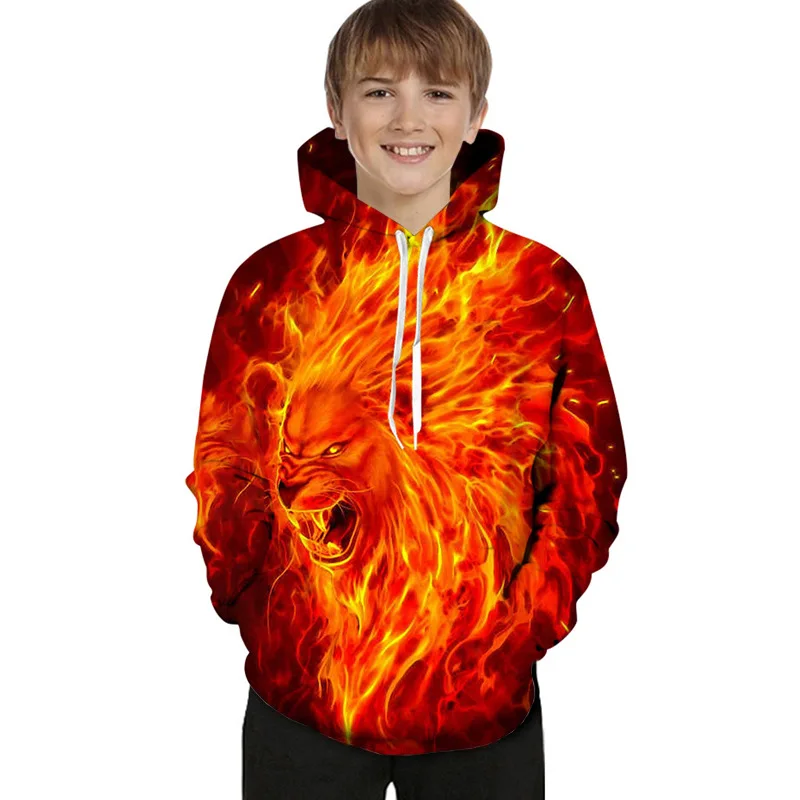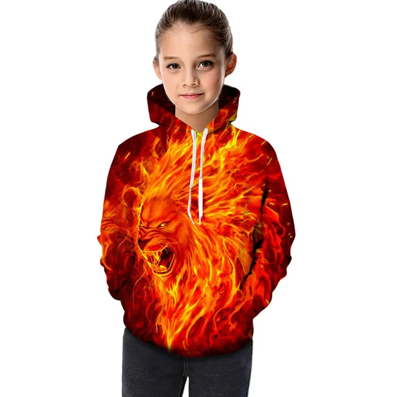 Kids Sports Hoodies Long Sleeve Children Casual Animal Lion 3D Pullovers Hoody Teenage Boys Girls Streetwear Sweatshirt Clothing