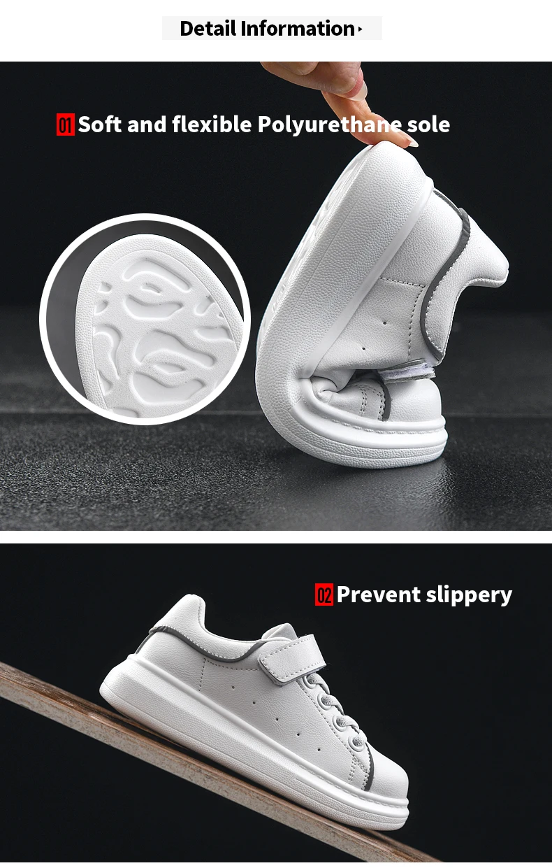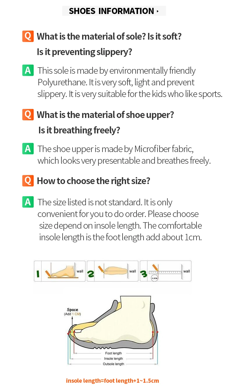 A: This sole is made by environmentally friendly Polyurethane. It is very soft, light and prevent slippery. It is very suitable for the kids who like sports.