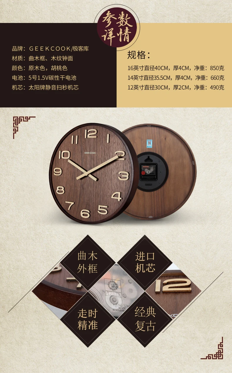 Kitchen Vintage Wall Clock Silent Wood Children Wood Wall Clocks Home Decor Mute Kids Vintage Montre Murale Wall Watch JJ60WC