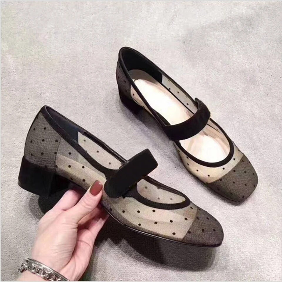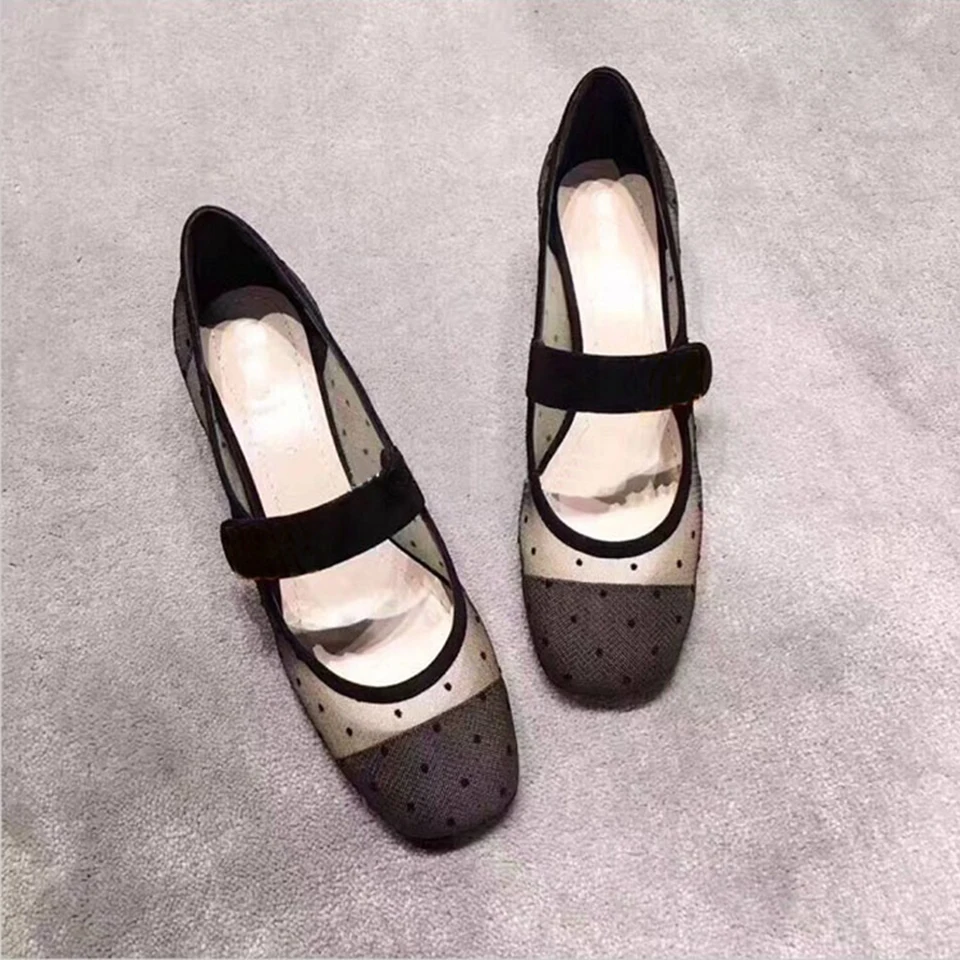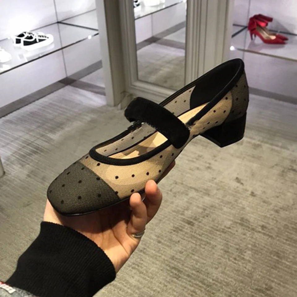 Kmeioo Air Mesh Mary Janes Fashion Spring Autumn Shoes Woman Round Toe High Heels Square Heel Pumps Prom Shoes