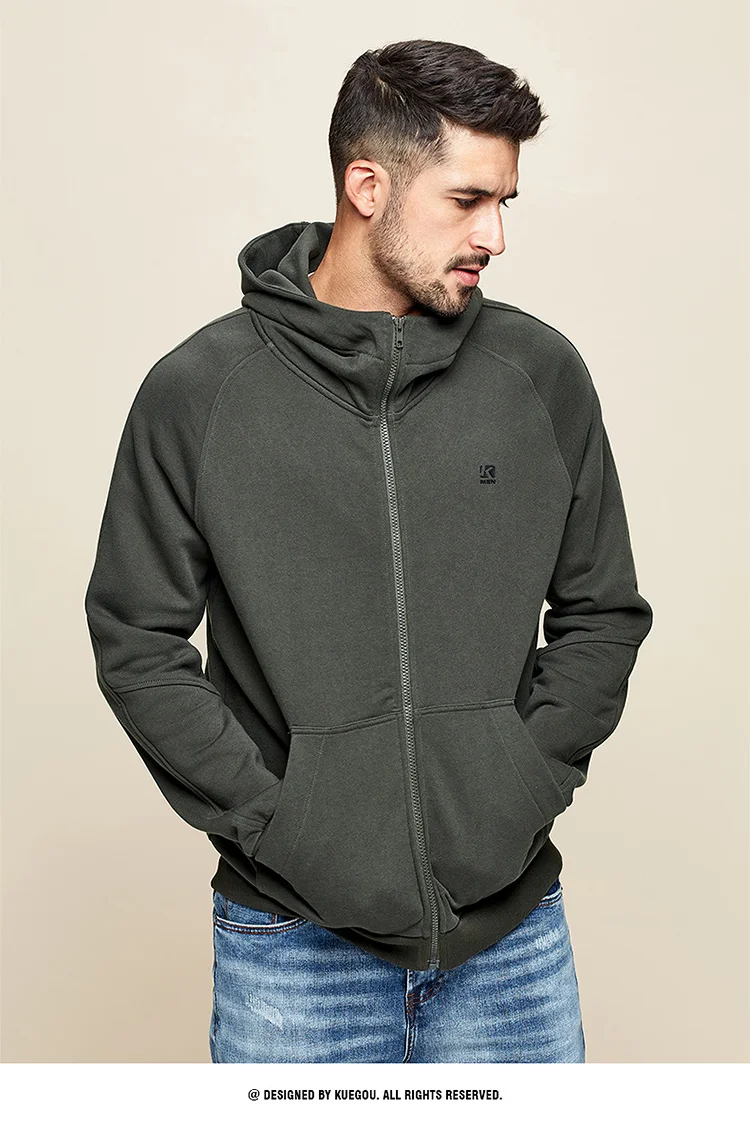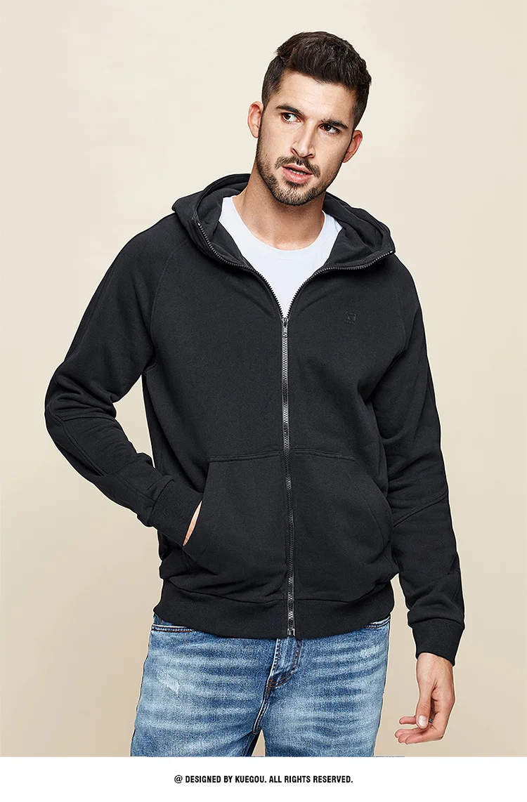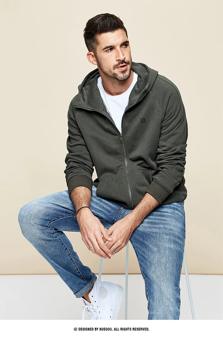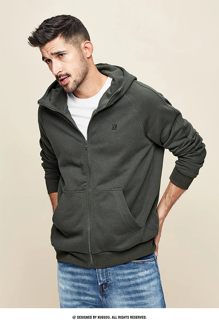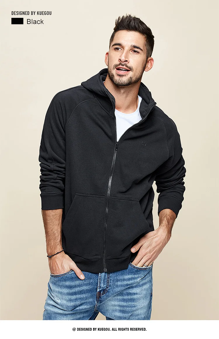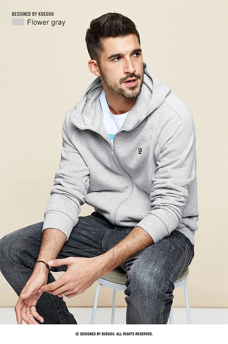 KUEGOU 100% Cotton winter men hoodies tide male contracted leisure cardigan coat Men Sports Casual Wear Zipper