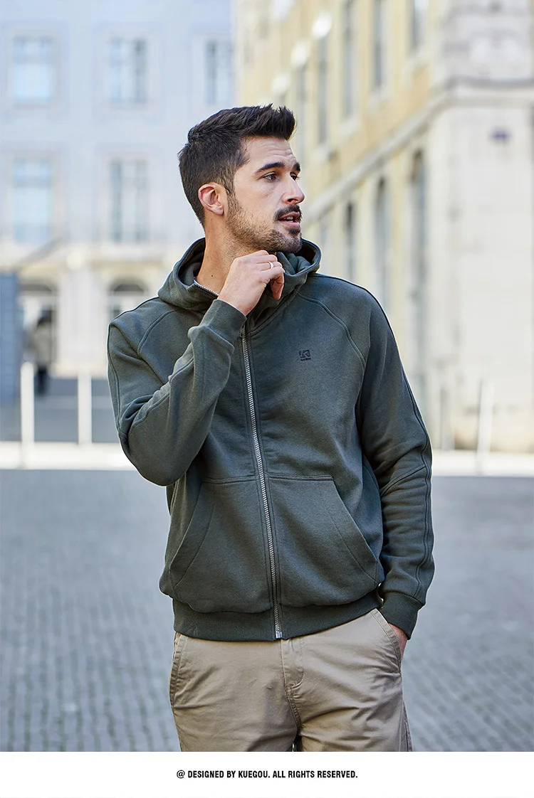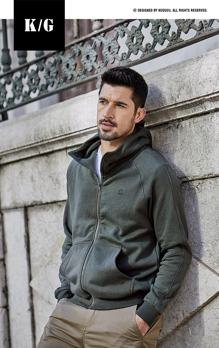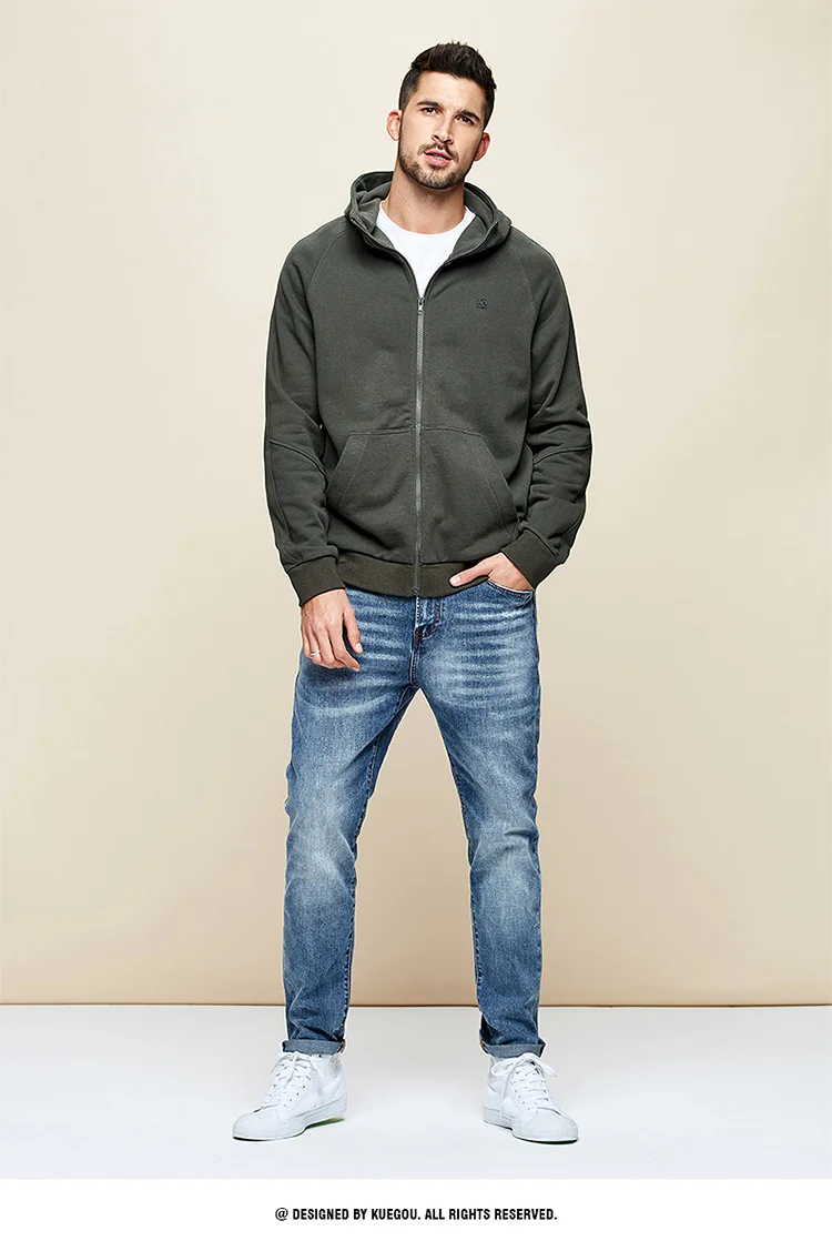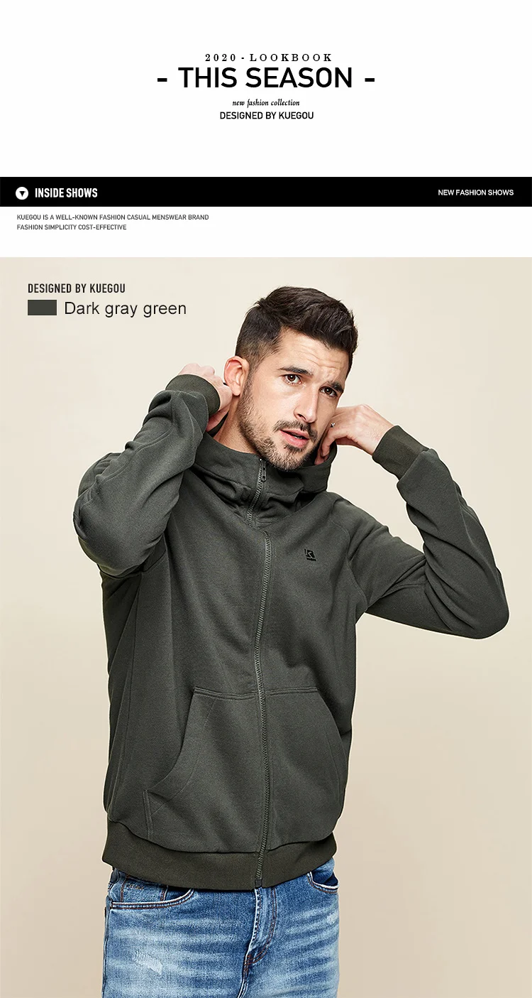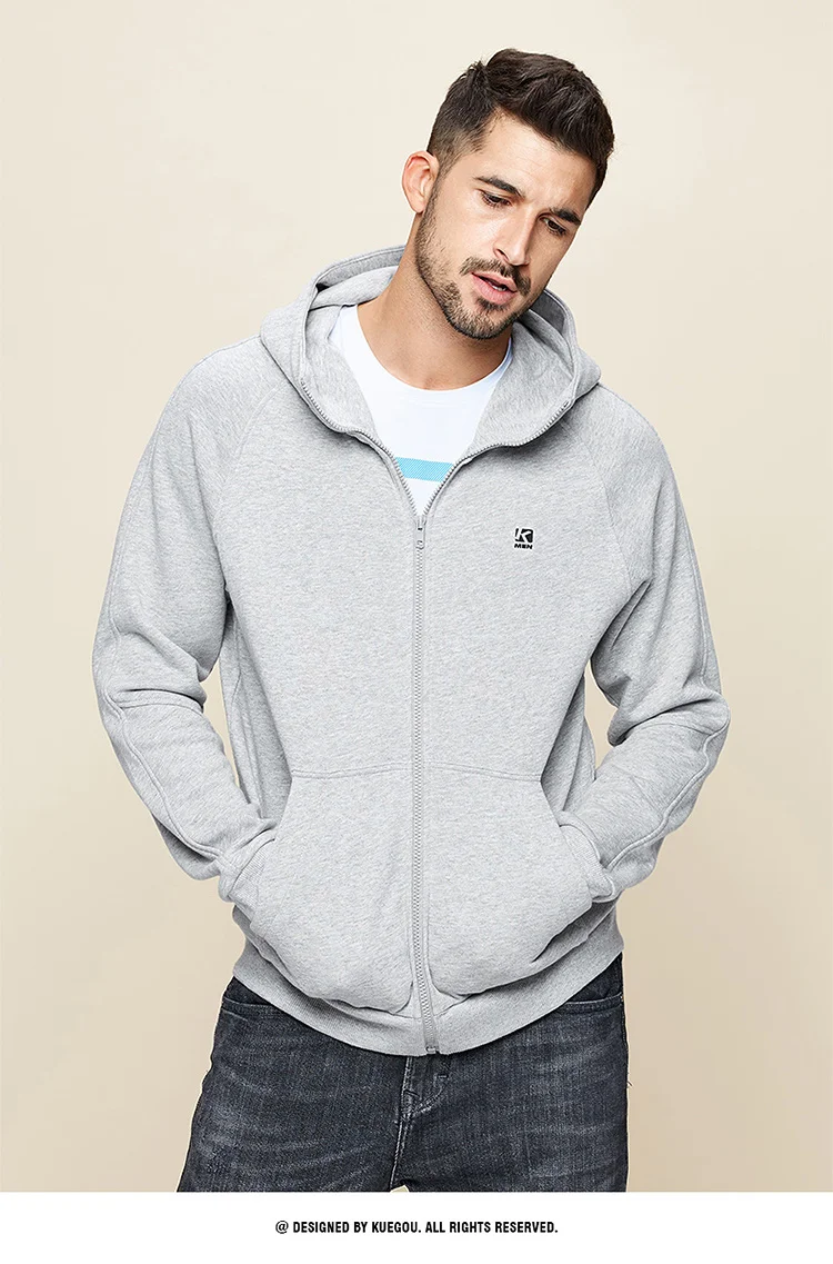 KUEGOU 100% Cotton winter men hoodies tide male contracted leisure cardigan coat Men Sports Casual Wear Zipper
