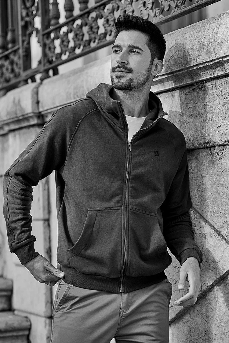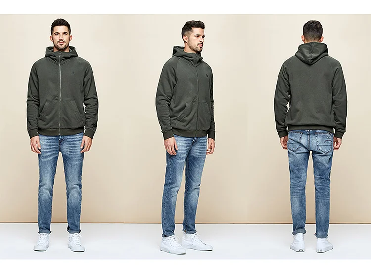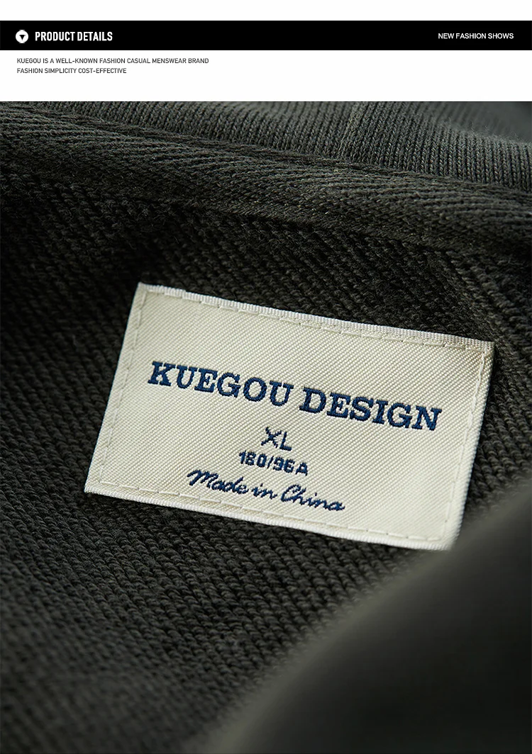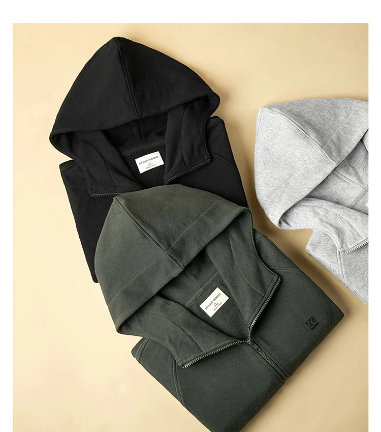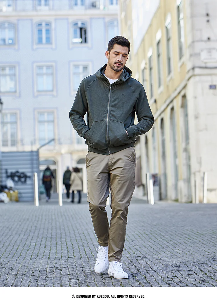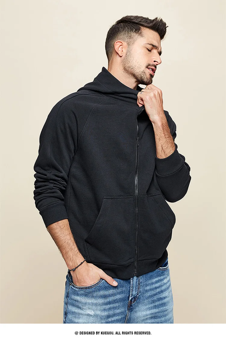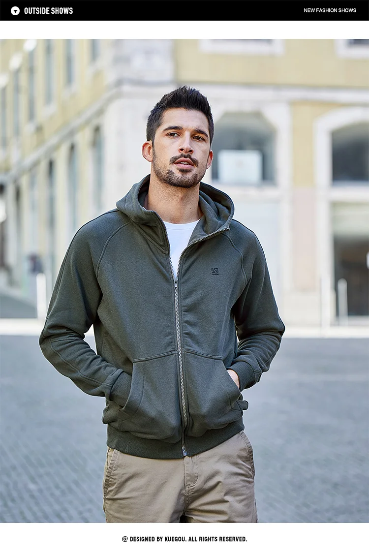 KUEGOU 100% Cotton winter men hoodies tide male contracted leisure cardigan coat Men Sports Casual Wear Zipper