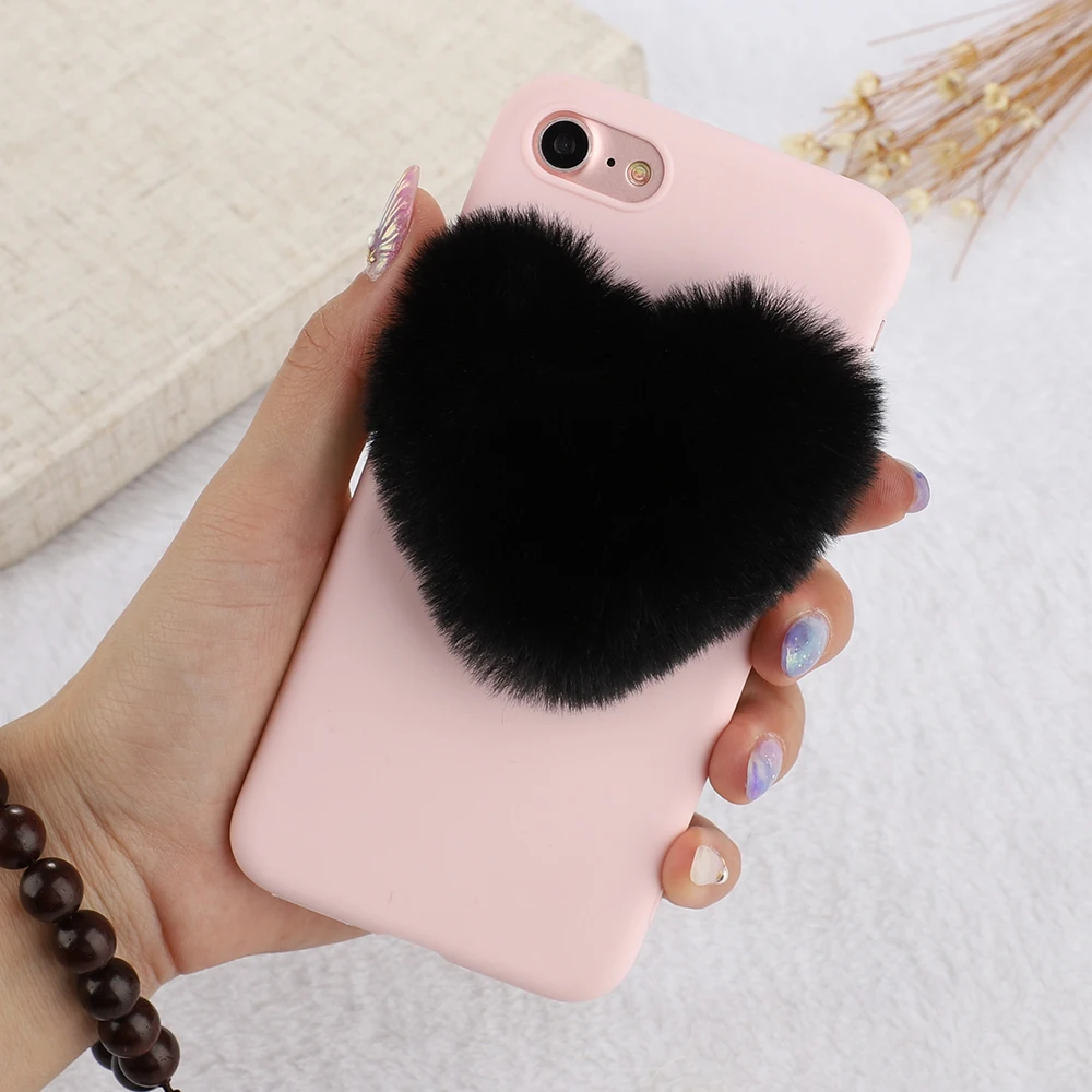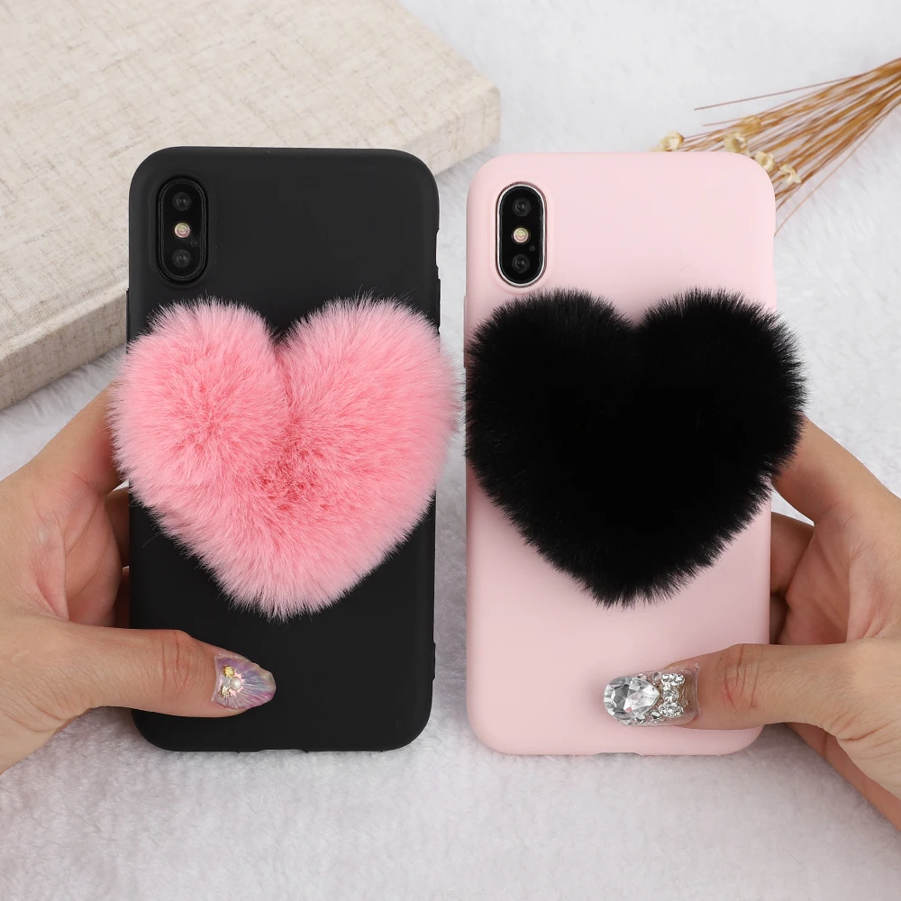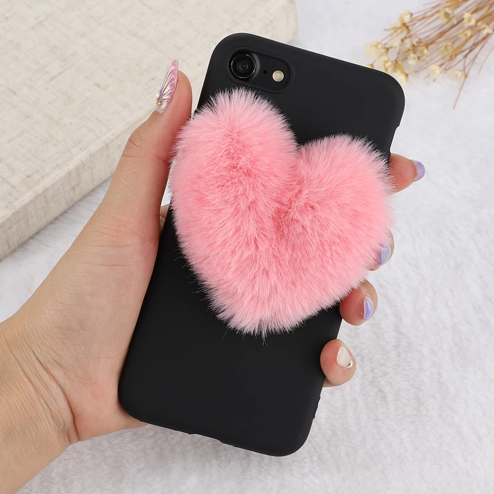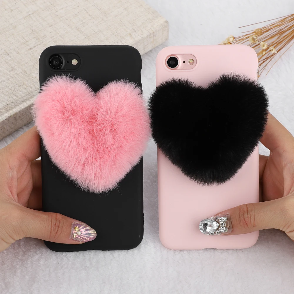 The case with cute 3d love heart fuzzy pom pom decorates your phone funny and makes your phone more special and outstanding.