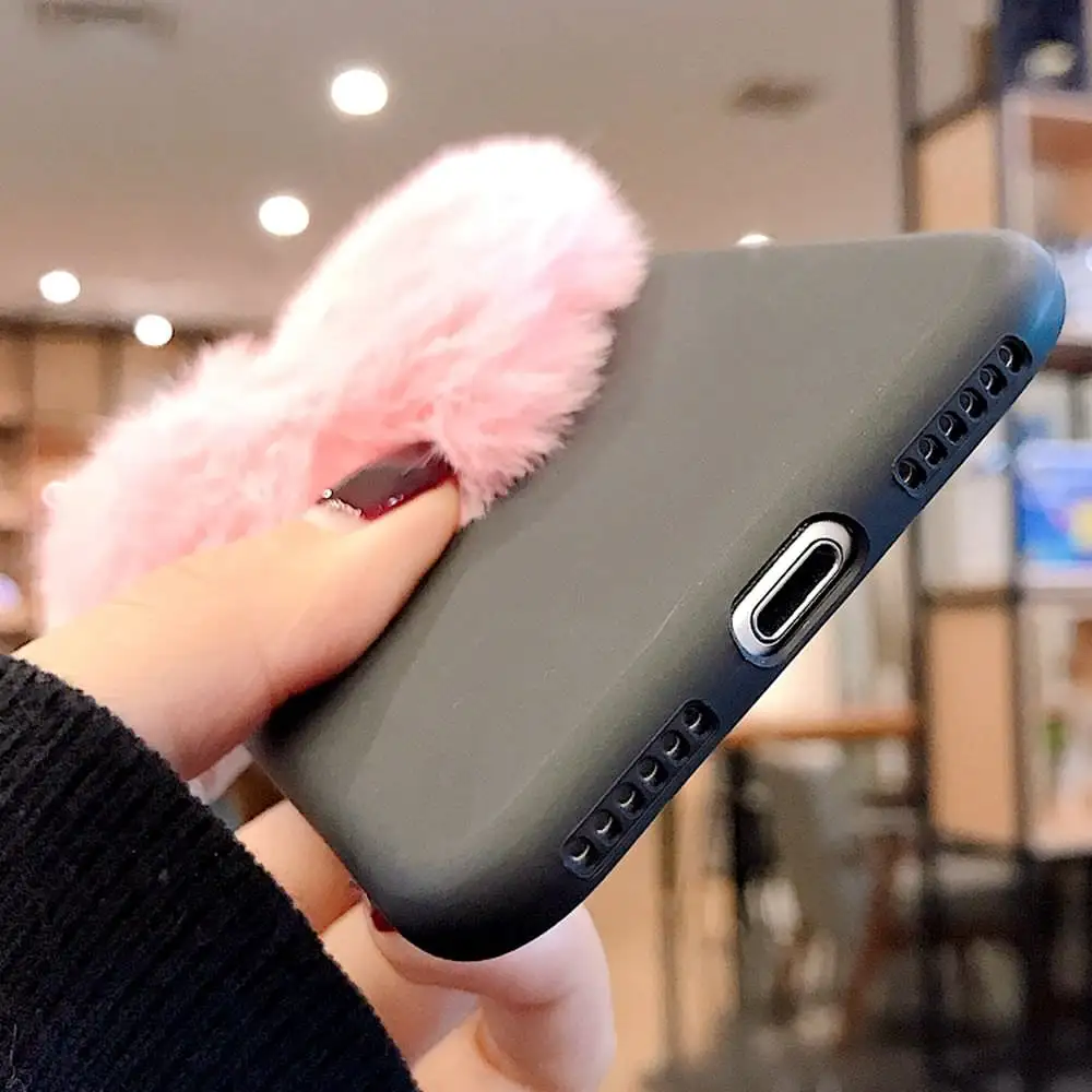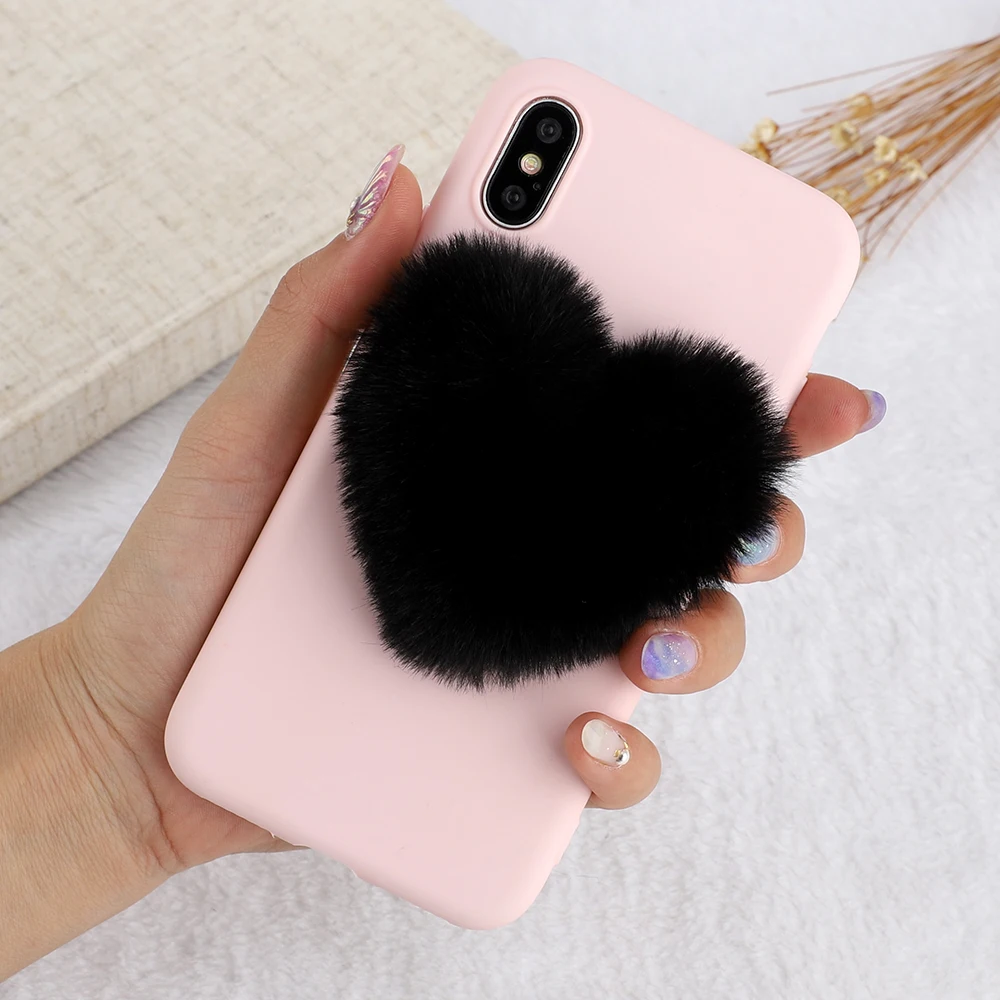 The case with cute 3d love heart fuzzy pom pom decorates your phone funny and makes your phone more special and outstanding.