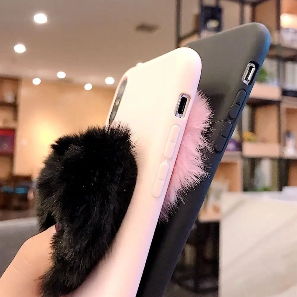 Unique 3d furry pom pom design to show it off with fashion trend of cellphone back cover.