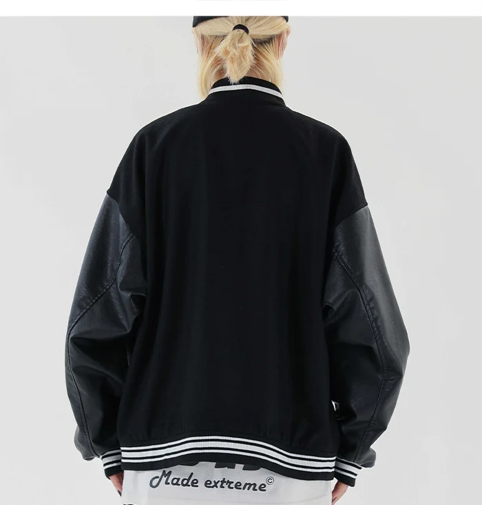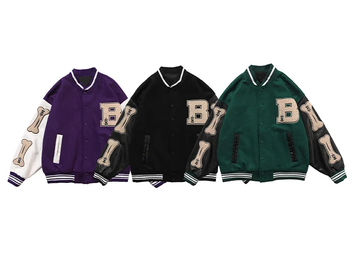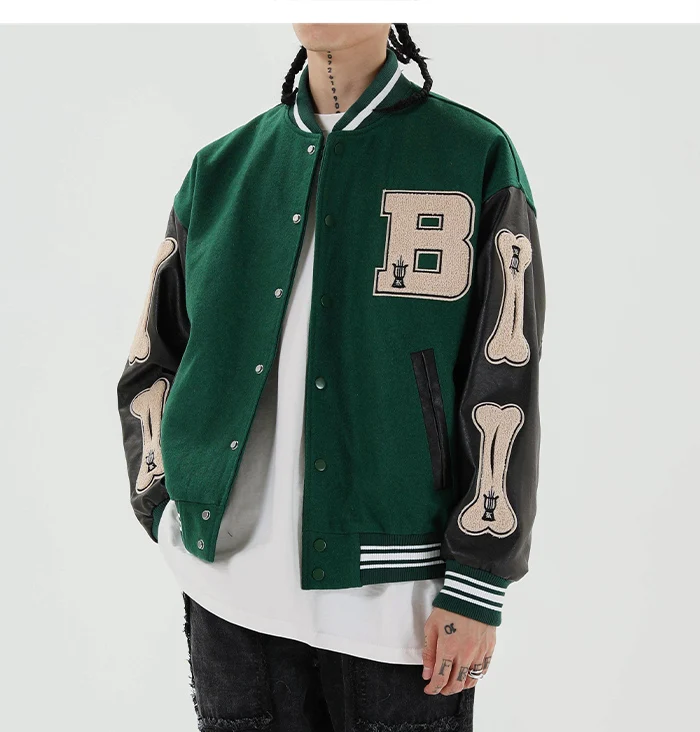 LACIBLE 2021 Hip Hop Furry Bone Patchwork Color Block Jackets Mens Harajuku Streetwear Bomber Baseball Coat Unisex