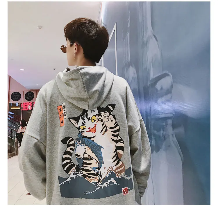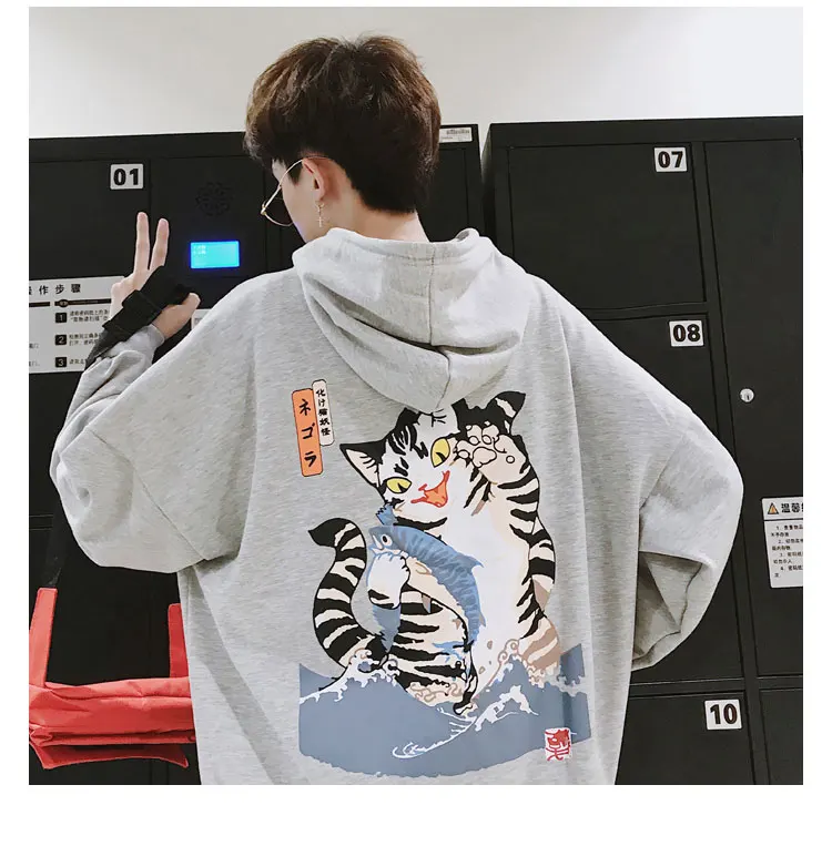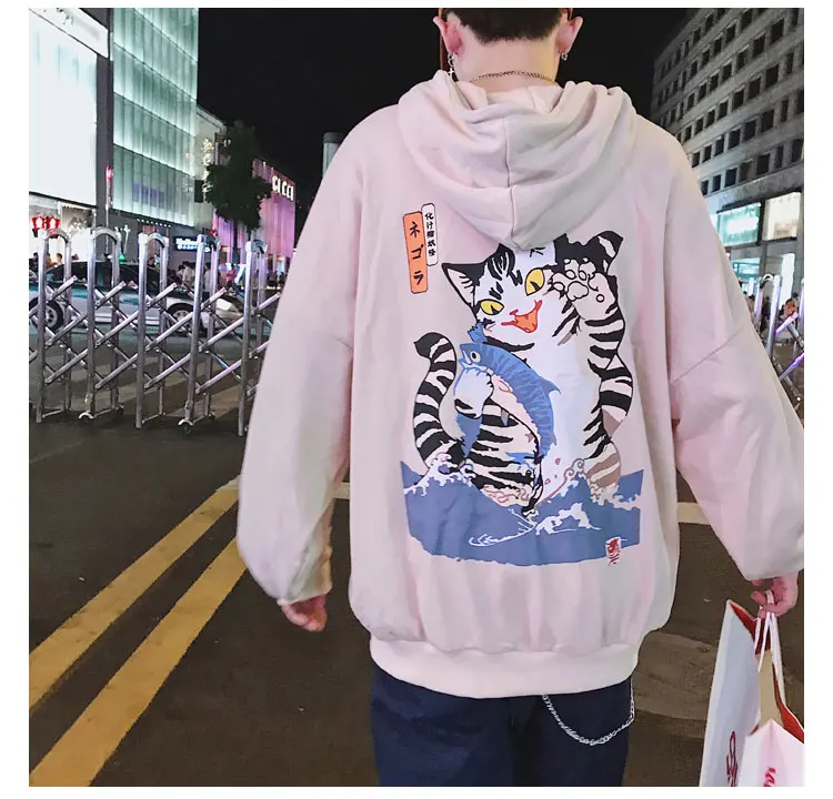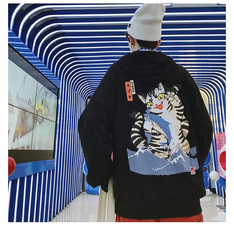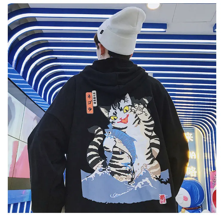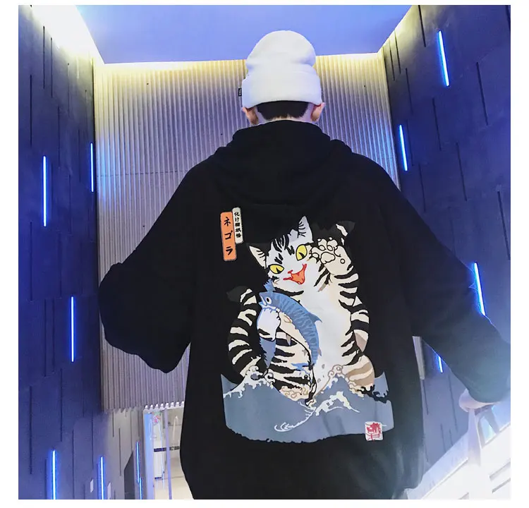 LAPPSTER Men Streetwear Casual Cat Hooded Hoodies 2020 Mens Hip Hop Harajuku Sweatshirts Male Korean Fashions Black Hoodie INS