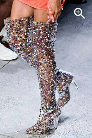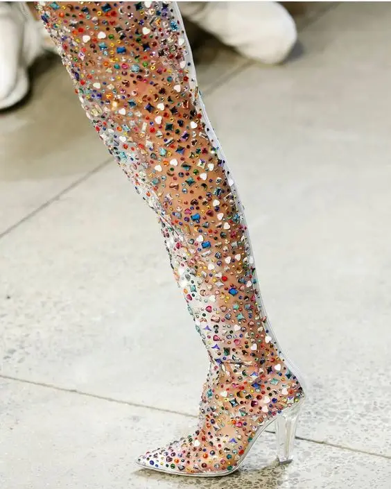 Pointed Toe Over-the-Knee Boots High Heels Summer Autumn Transparent PVC Shoes Zapatos De Mujer