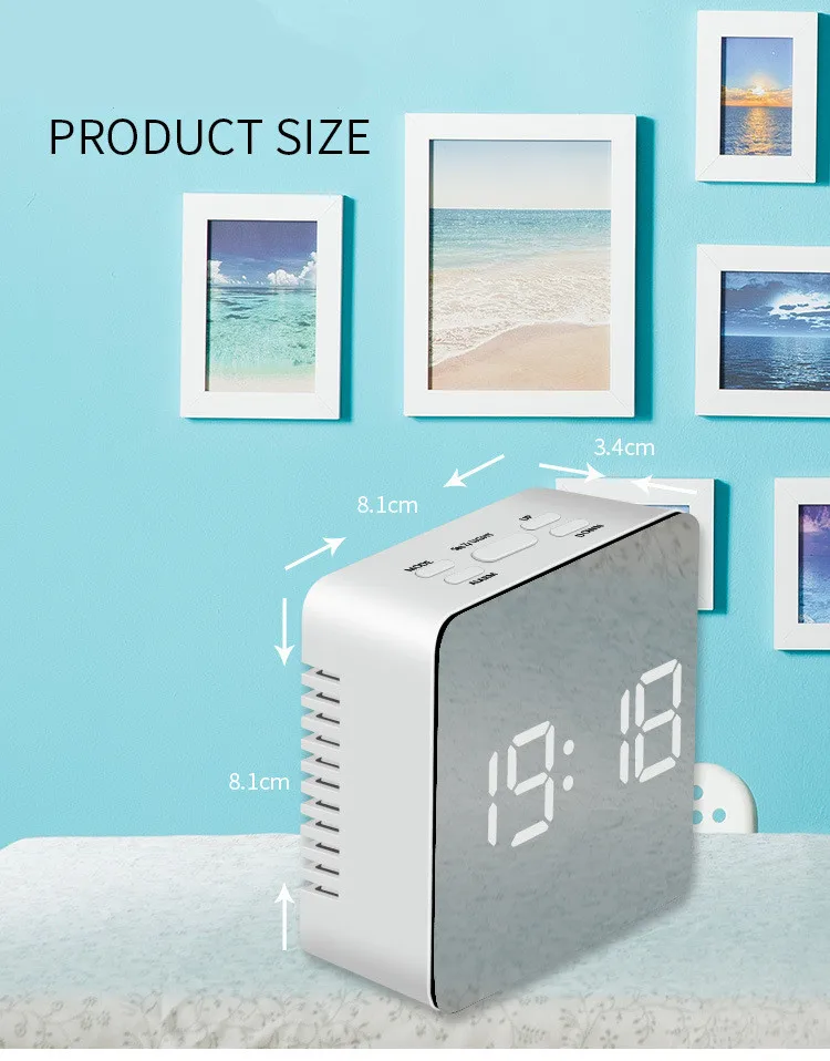 LED Mirror Alarm Clock Digital Snooze Table Clock Wake Up Light Electronic Large Time Temperature Display Home Decoration Clock