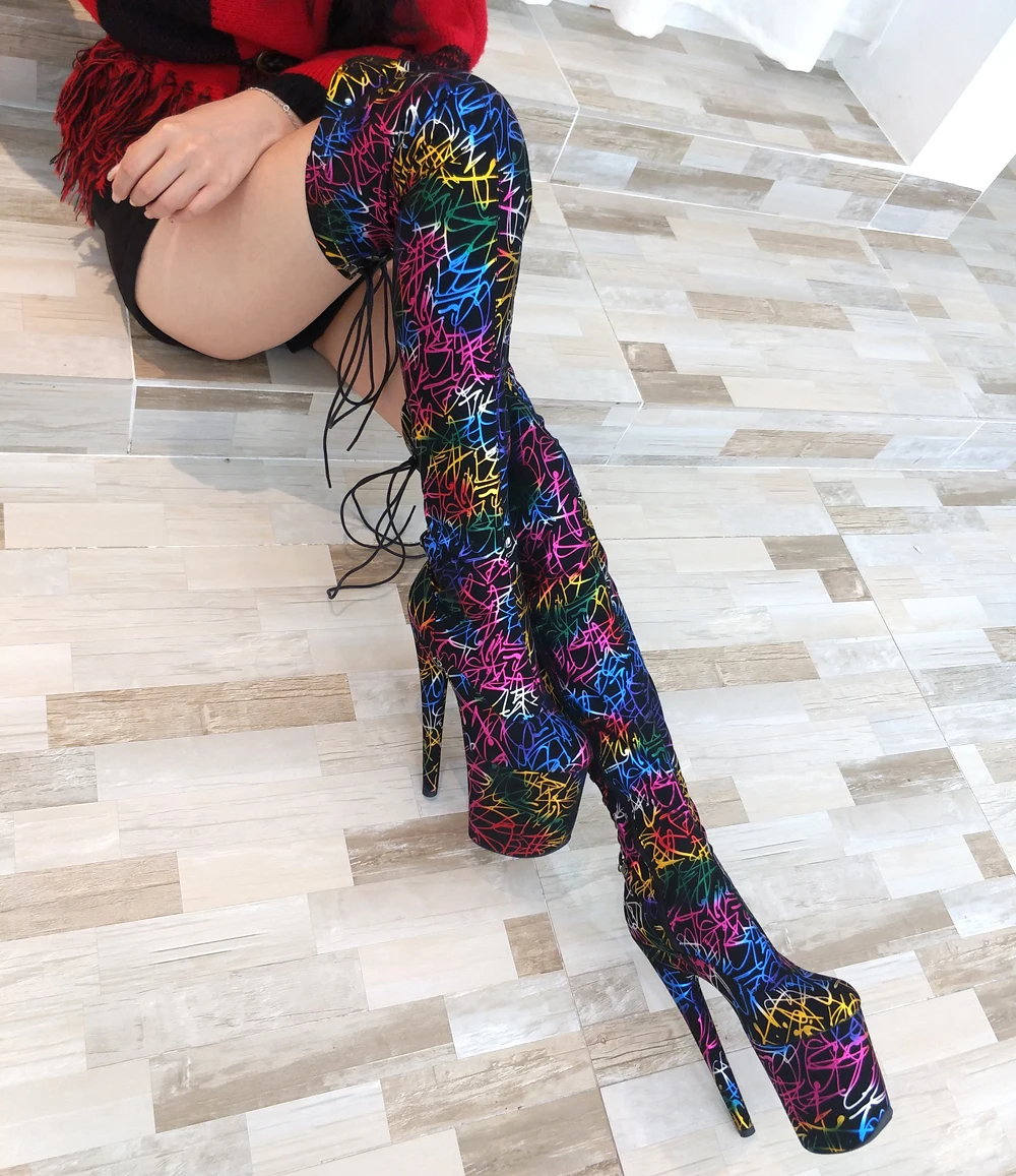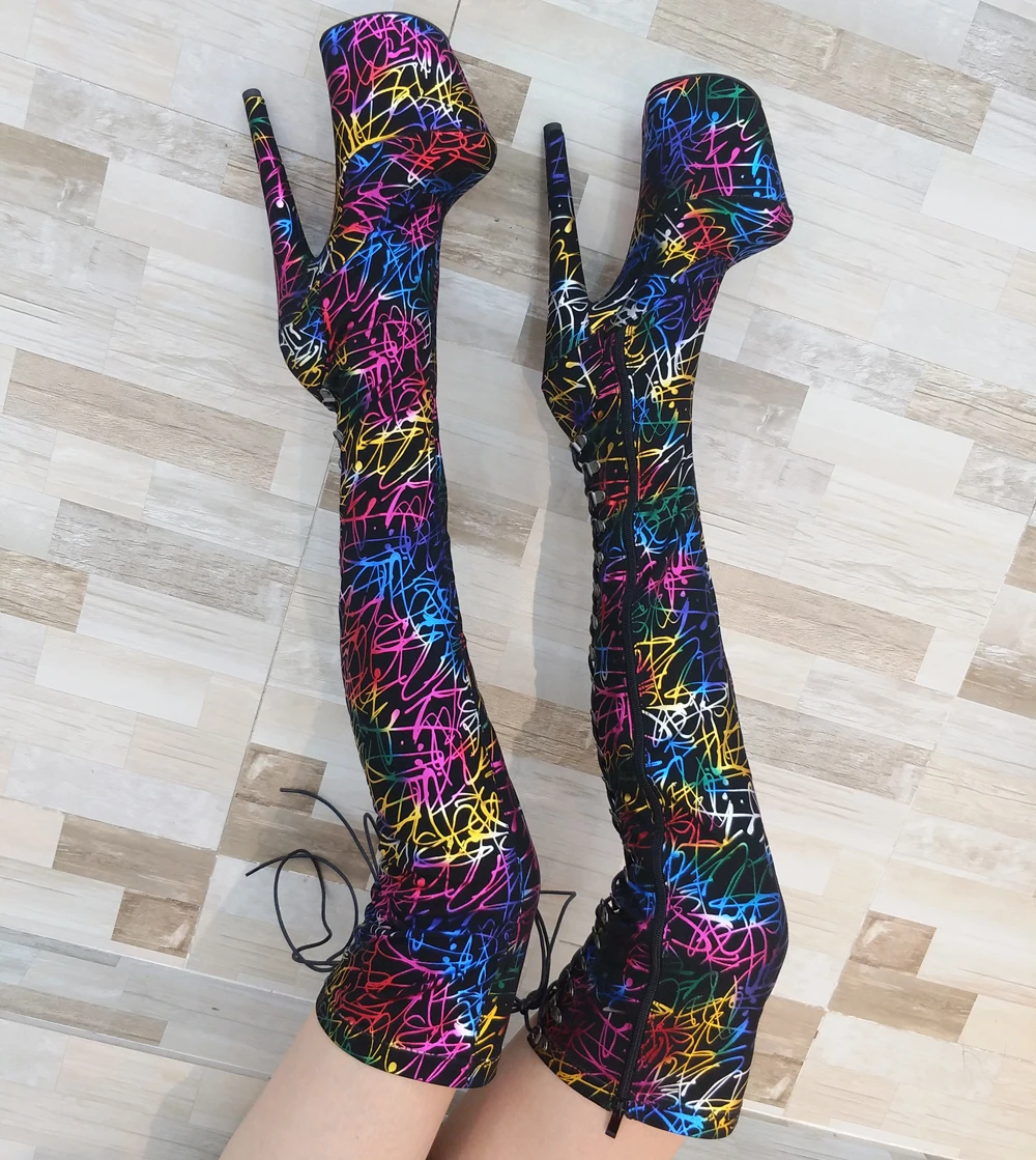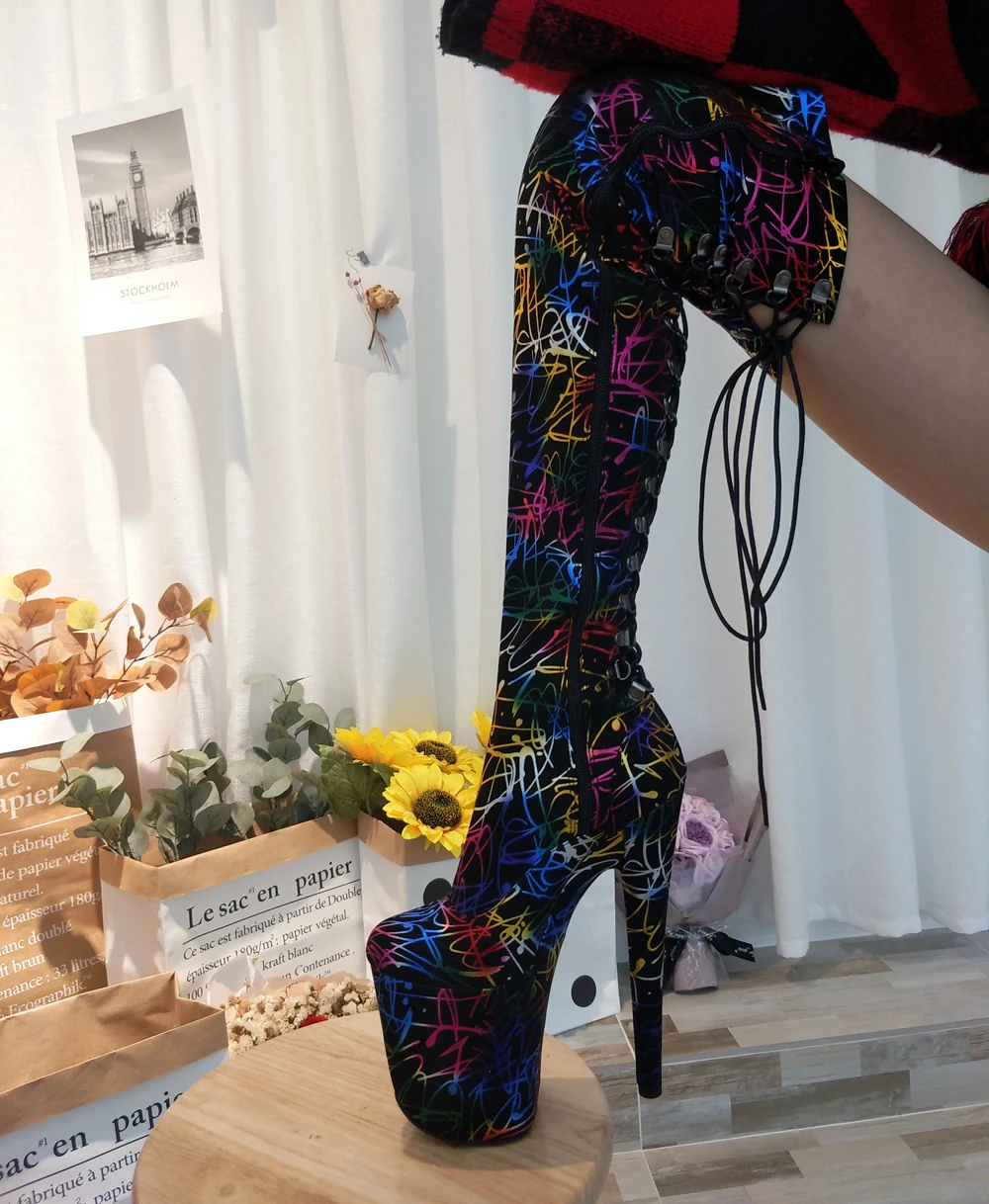 Leecabe 20CM/8inches Pole dancing shoes High Heel platform Boots closed toe Pole Dance boots