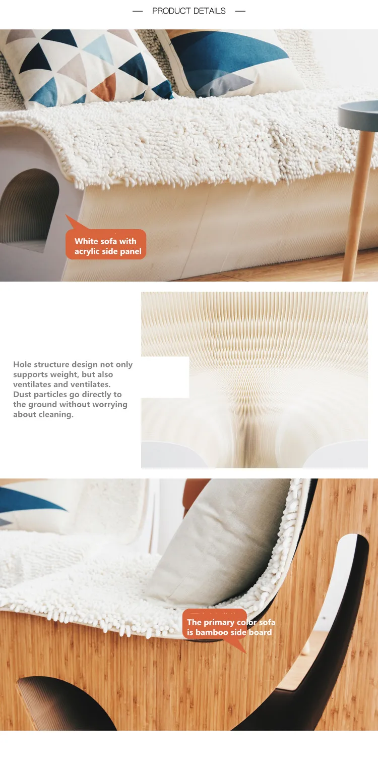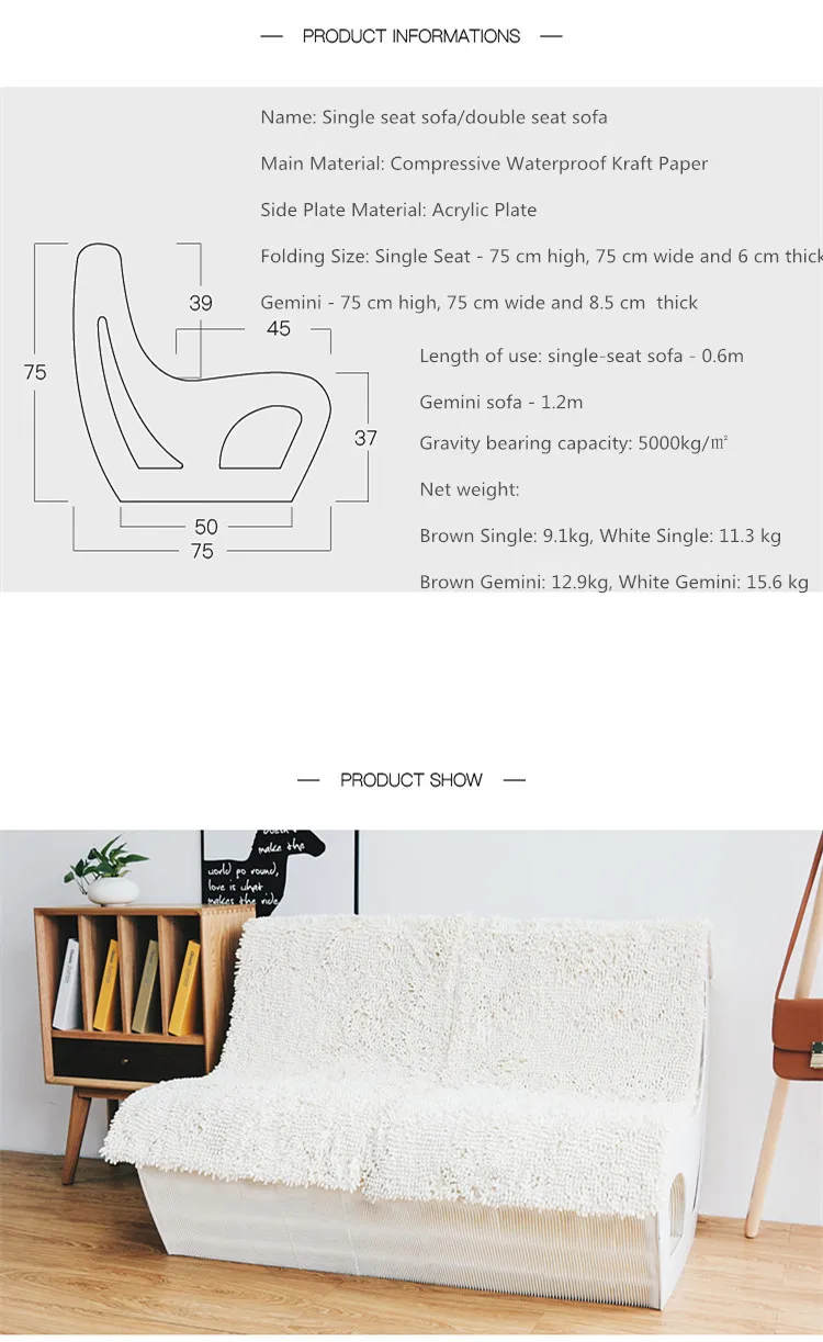 Using the super simple, stretching and folding bending, the need to explain is after receiving the product, please in large space as far as possible the paper furniture fully stretched open (close to the honeycomb hexagon), fixed a few seconds after the re release, repeated several times can effectively reduce resilience, the honeycomb hole upward to sit (stress), please cooperate with mat used together. Only in this way can effectively reduce the indentation and increase comfort.