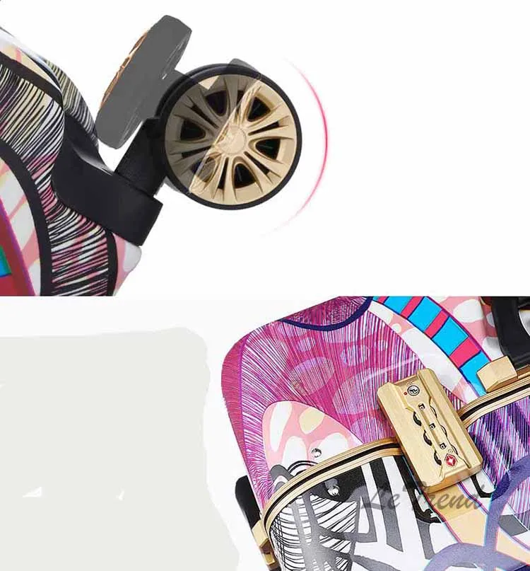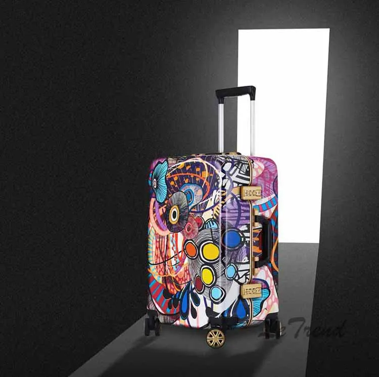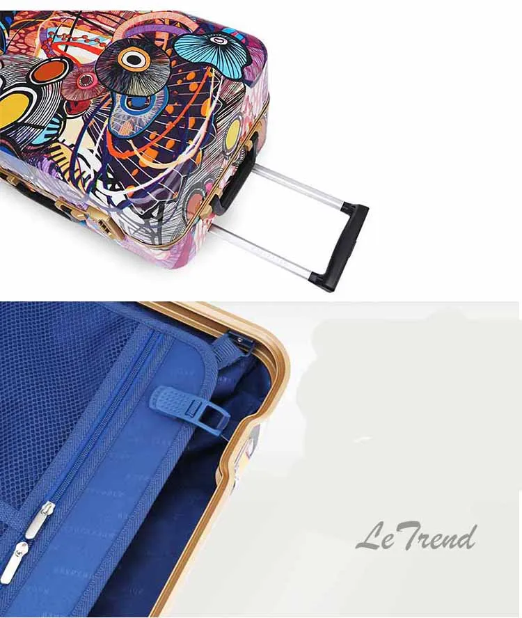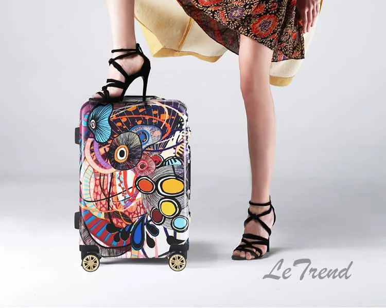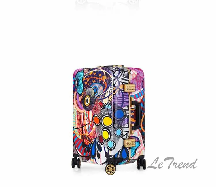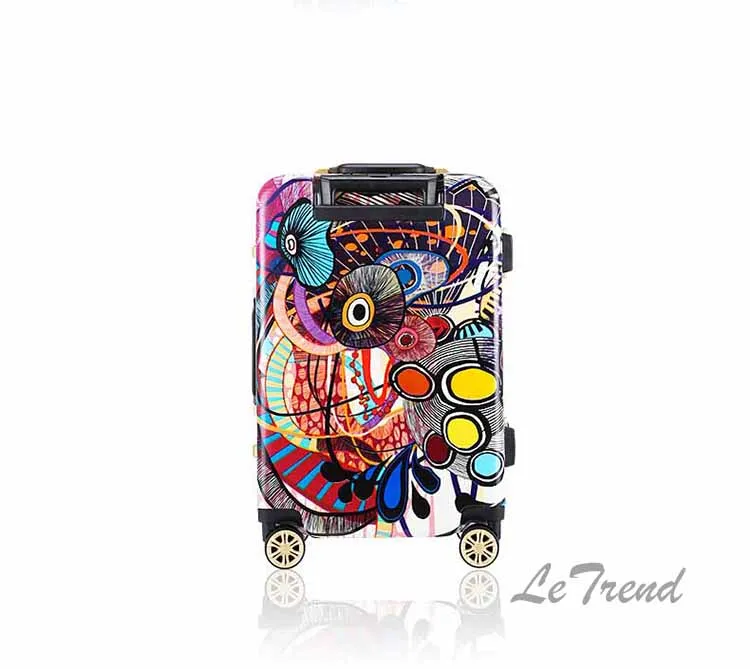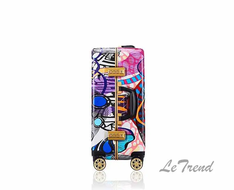 Letrend Illustration series Fashion Rolling Luggage Spinner Aluminium Frame Trolley Wheel Suitcase Hard Women Men Travel Bag