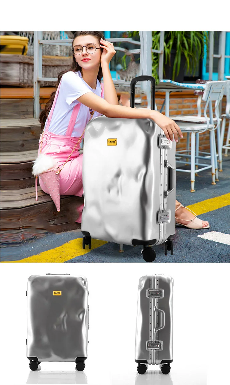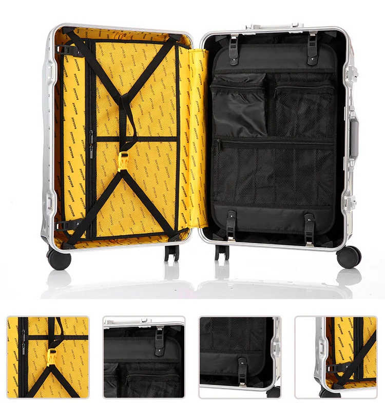 Letrend Retro Rolling Luggage Spinner Aluminium Frame Travel Bag Women Vintage Trolley 20 inch Men Carry On Suitcases Wheel