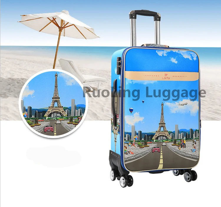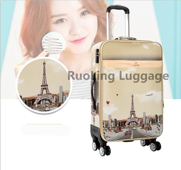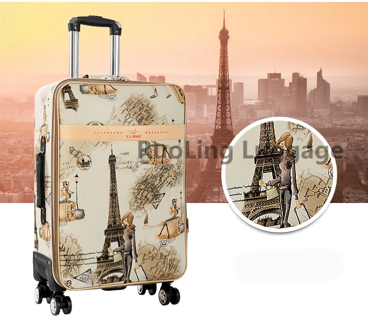 LeTrend Retro stamp Rolling Luggage Spinner password Trolley large capacity Suitcase Wheels 20 inch Cabin Travel Bags Trunk