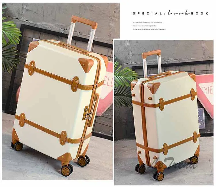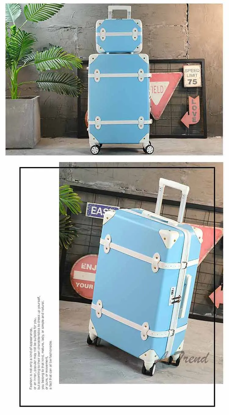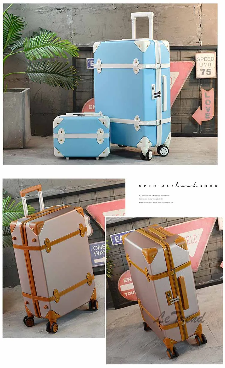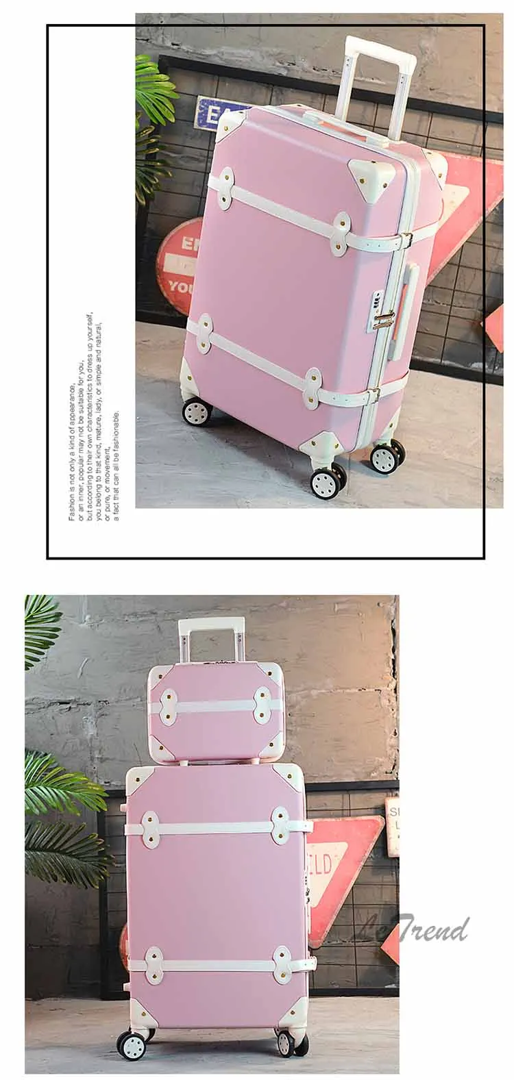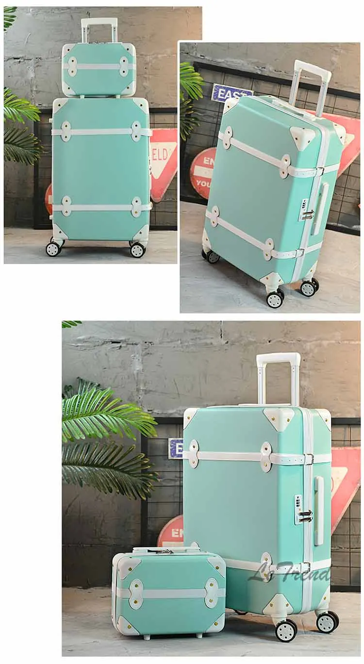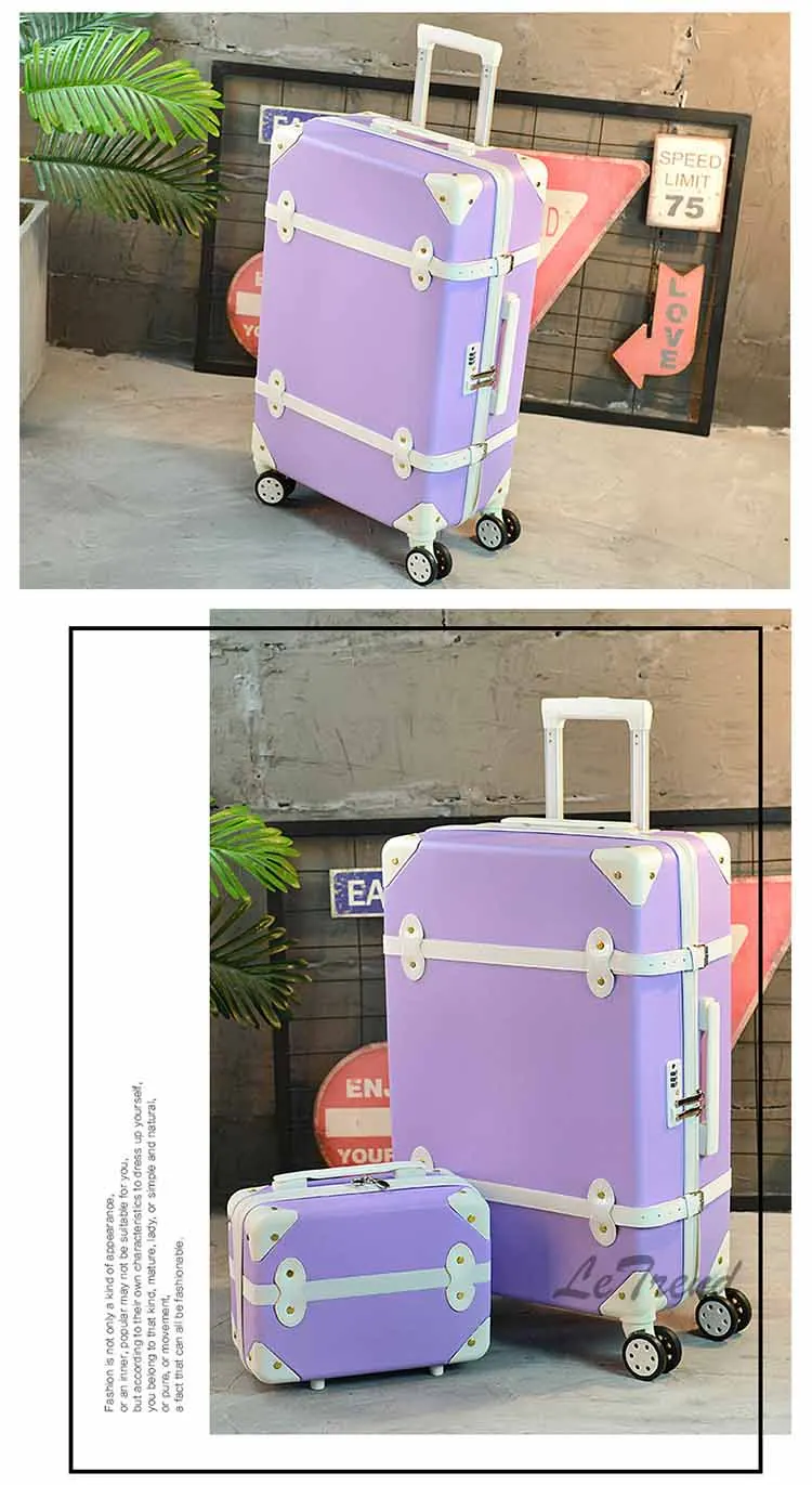 Letrend Women Suitcases Wheel Trolley Rolling Luggage Set Spinner vintage Travel Bag Student Carry on Luggage password Hardside
