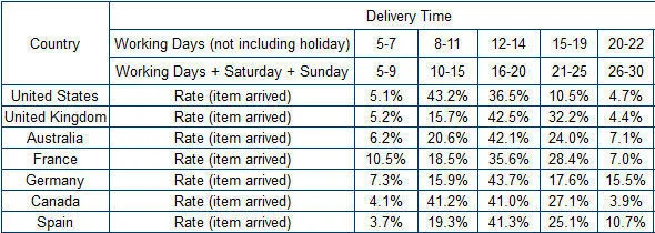 – Items are shipped by airmail, 15-25 Working days to most countries and areas -please refer to the table below for delivery time.