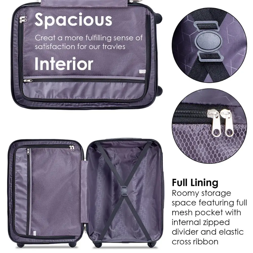 [Selected Material and Chic Design] Premium ABS Material makes this hard shell luggage set strong enough to withstand impact during trips for long-lasting durability and aesthetics. Decorated with a stylish, unique oblique line pattern and high sheen finish, your luggage will transform into a fashion accessory.