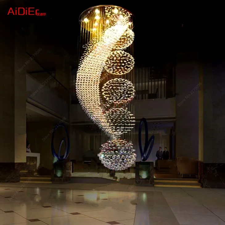 long double staircase modern chandelier lamp LED crystal llights stylish hotel project Villa hall lighting suspension wire