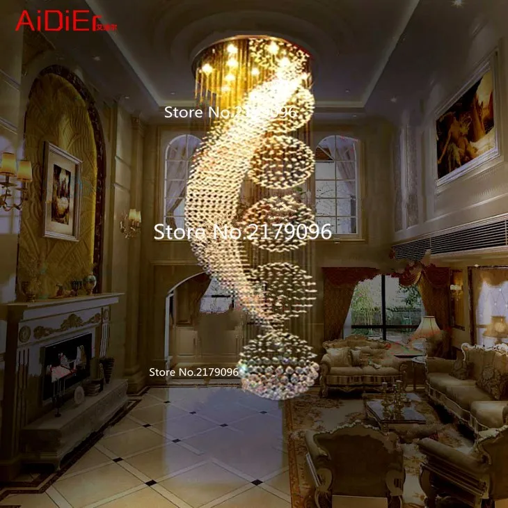 long double staircase modern chandelier lamp LED crystal llights stylish hotel project Villa hall lighting suspension wire